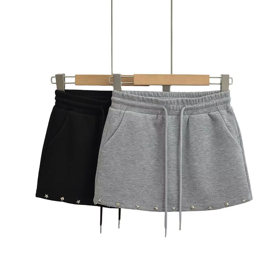 유럽과 미국 스타일의 뜨거운 소녀 여름 스포츠 캐주얼 솔리드 컬러 스커트 레이스 업 올 매치 쇼트 스커트 리벳