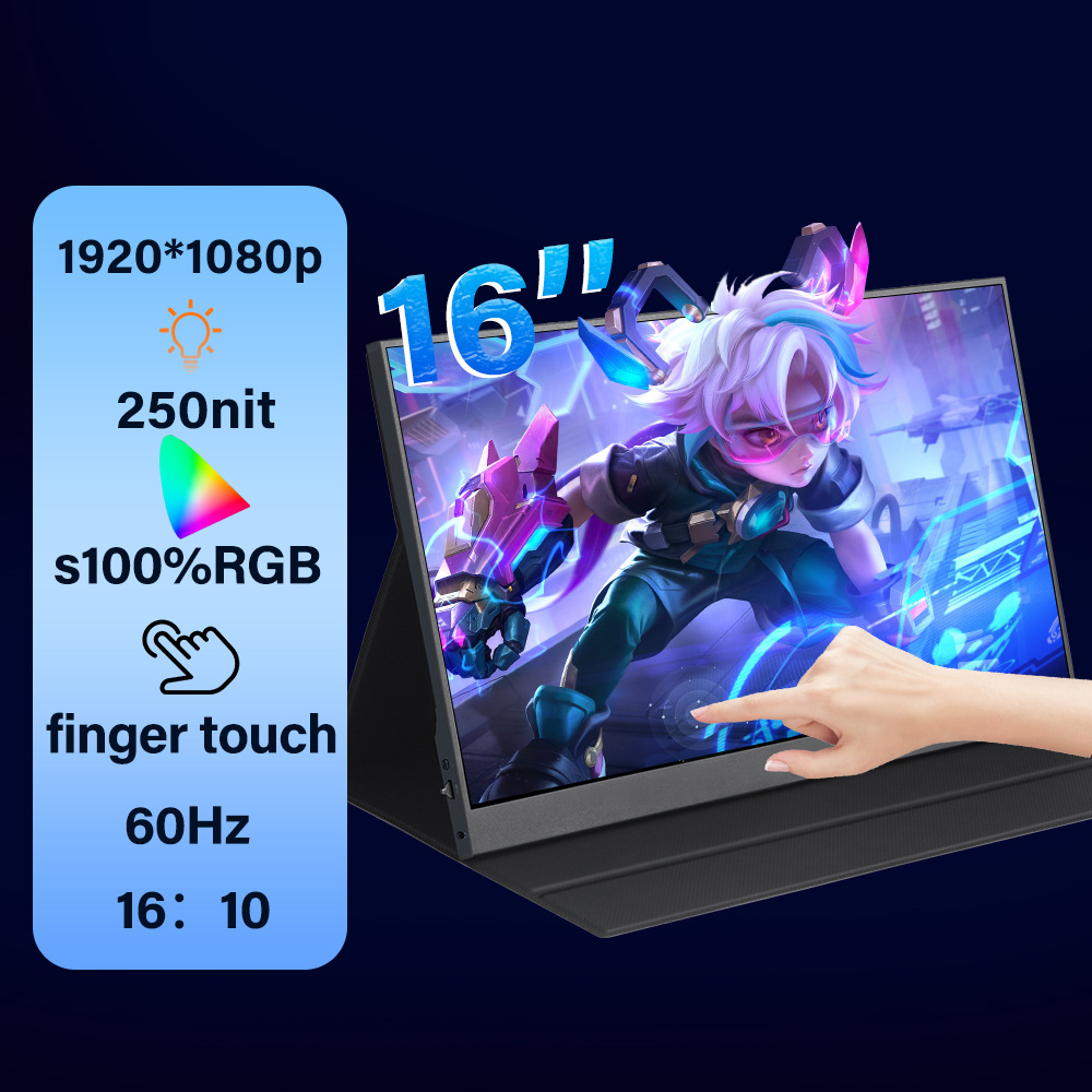 16 인치 터치 게임 전자 스포츠 휴대용 디스플레이 1200 해상도 100 RGB HDR 높은 화면 300Nit