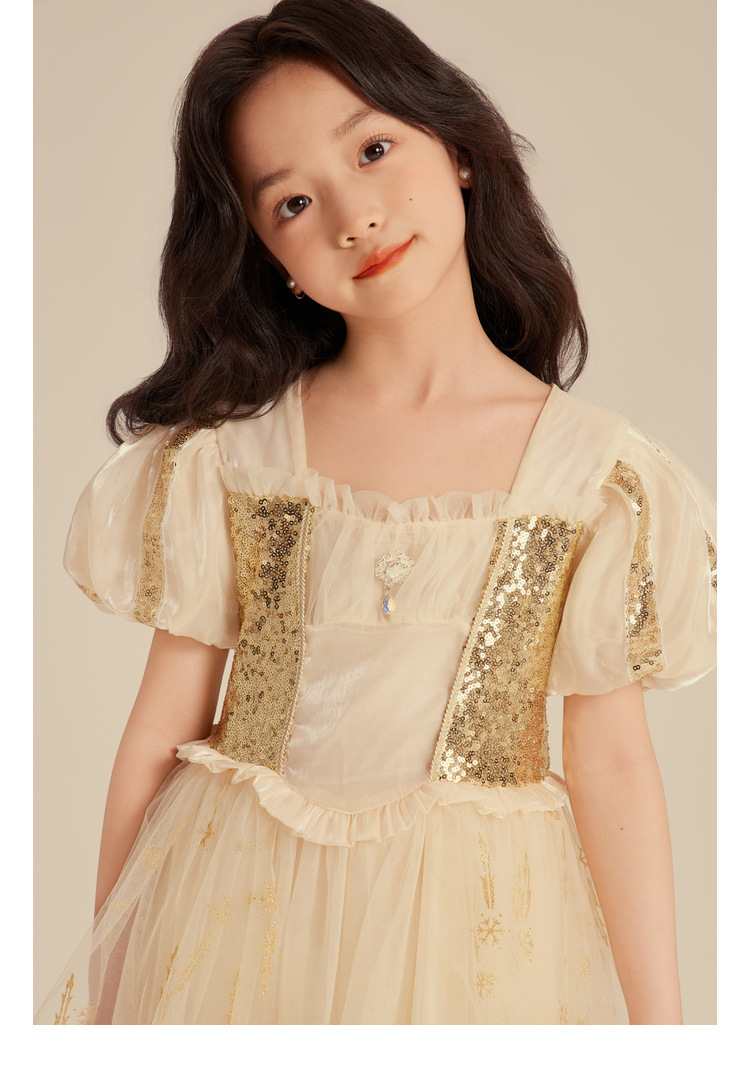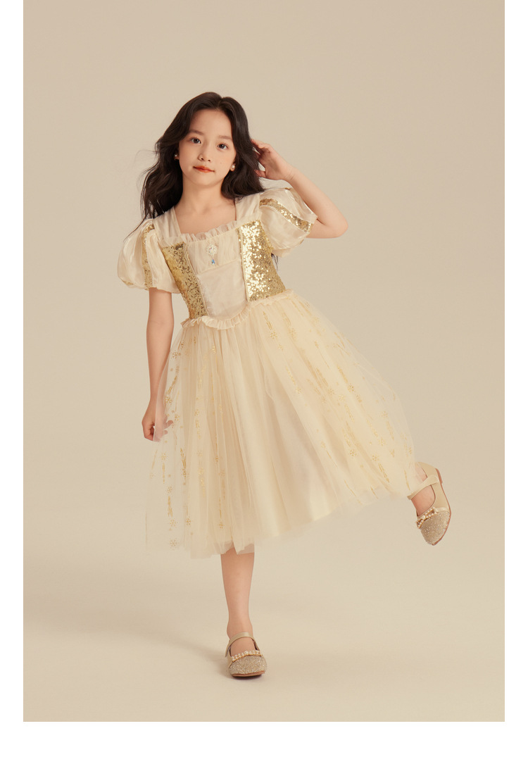 Amybaby 소녀 원피스 여름 2024 새로운 어린이 퍼프 소매 우아한 하이 엔드 공주 원피스