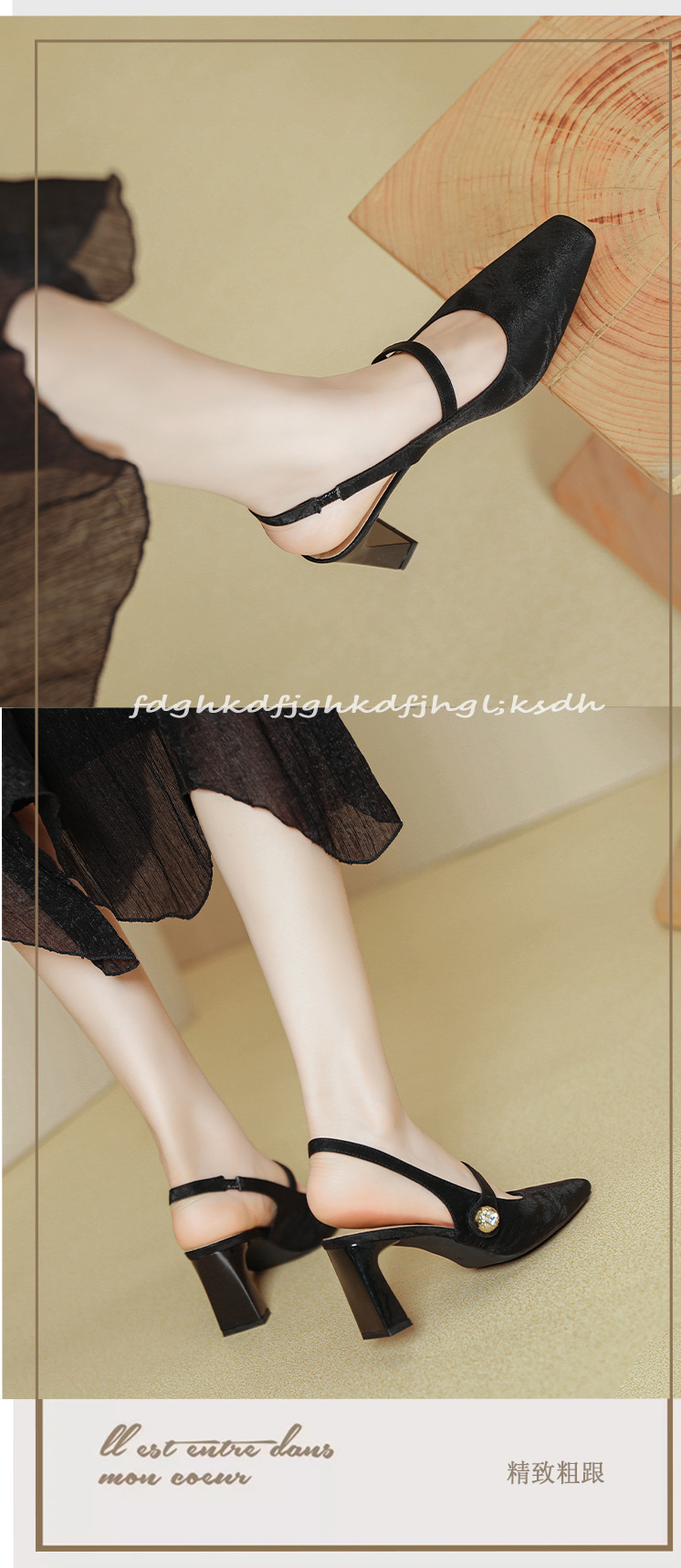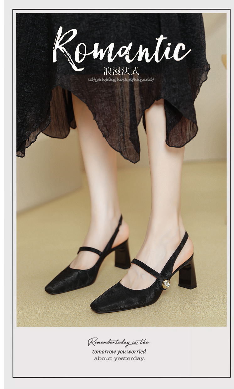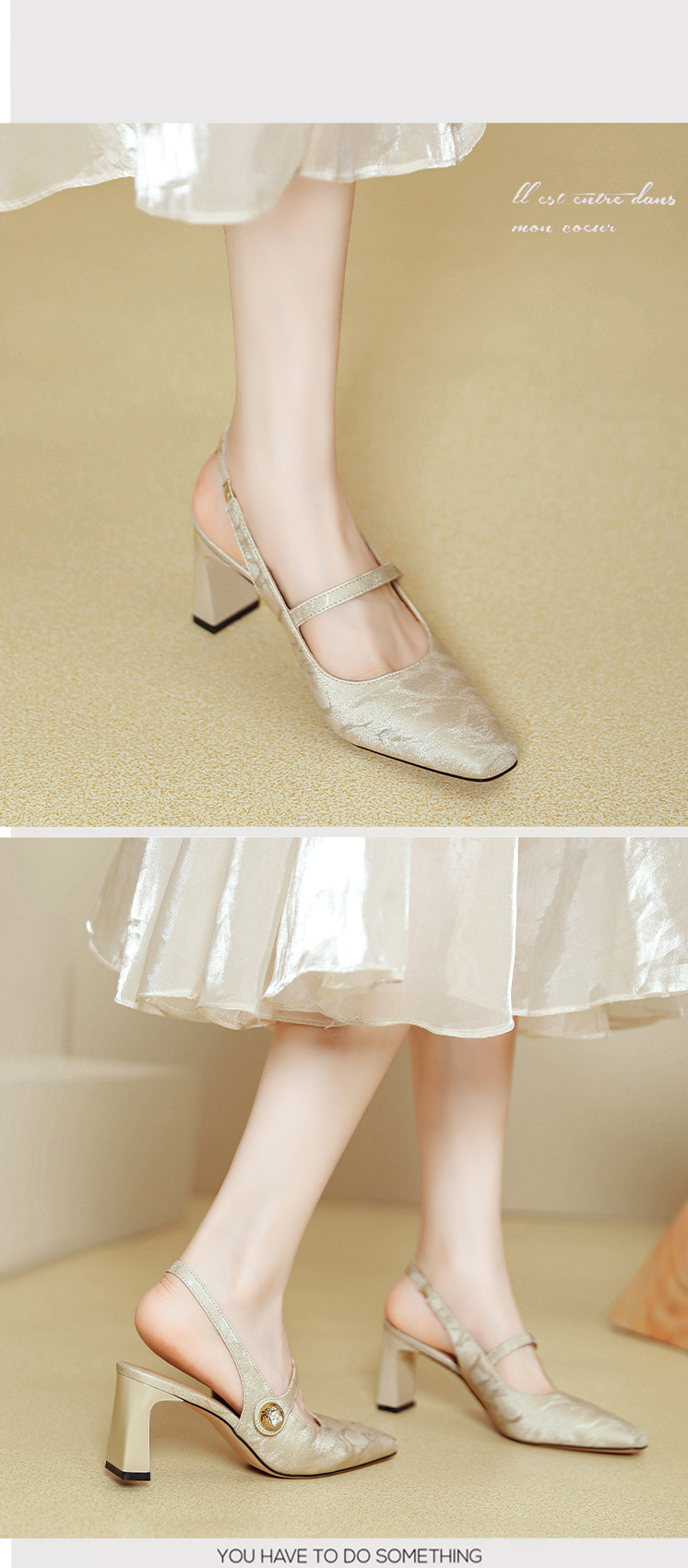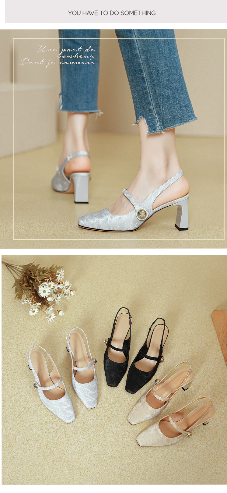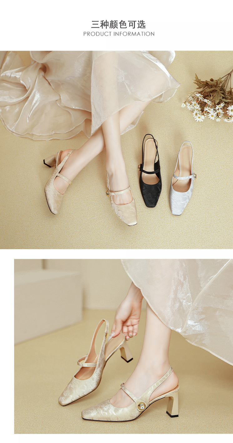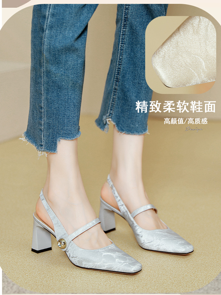 여성용 바오터우 샌들 여름 하이힐 2025 새로운 프렌치 메리 제인 슈즈 실버 원라인 스트랩 두꺼운 굽 하이힐스토어 가기