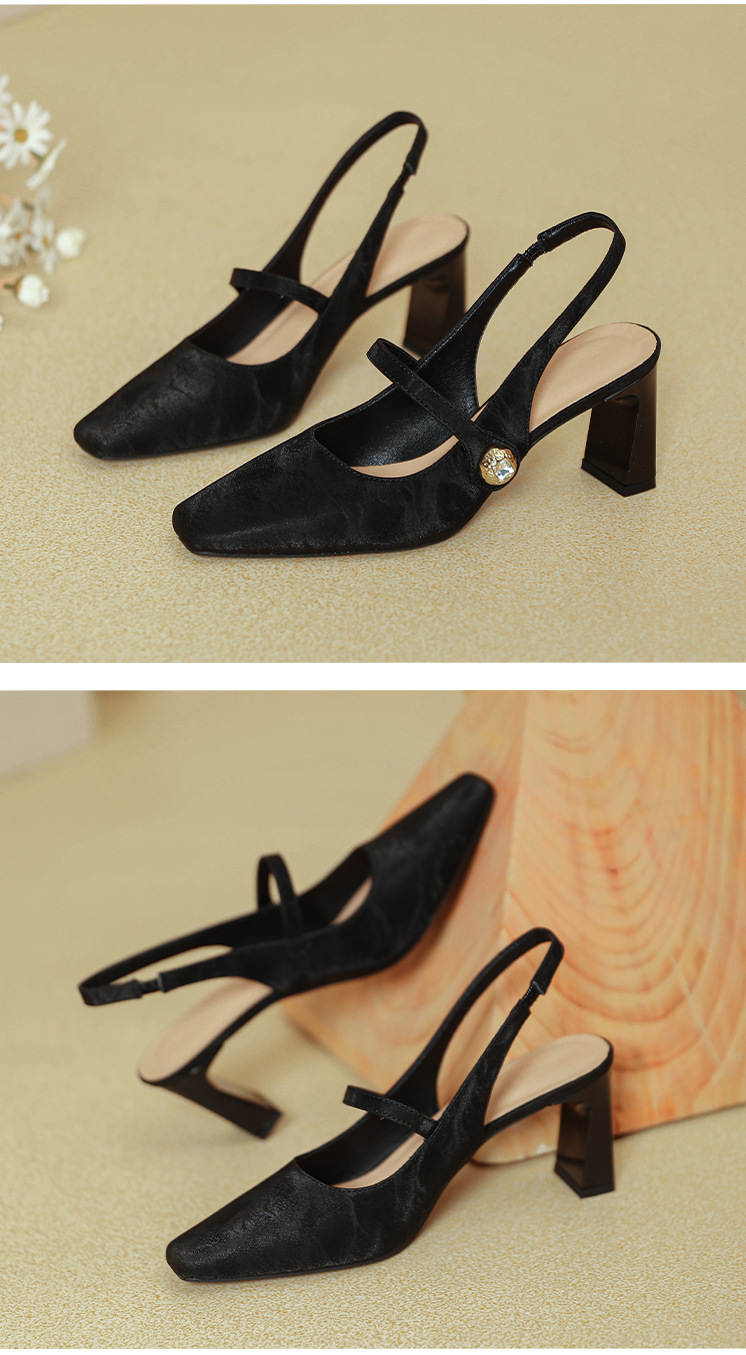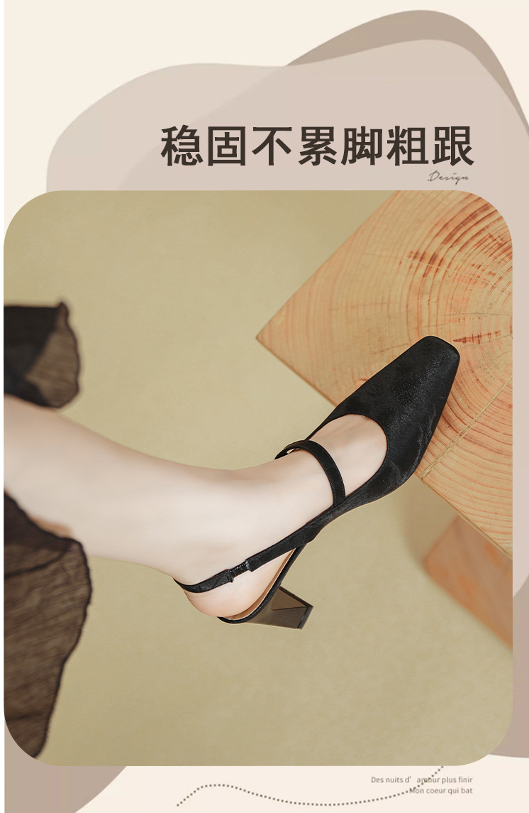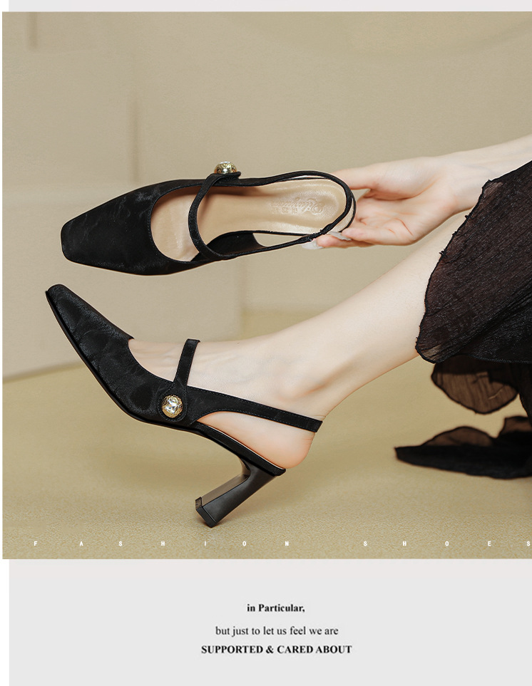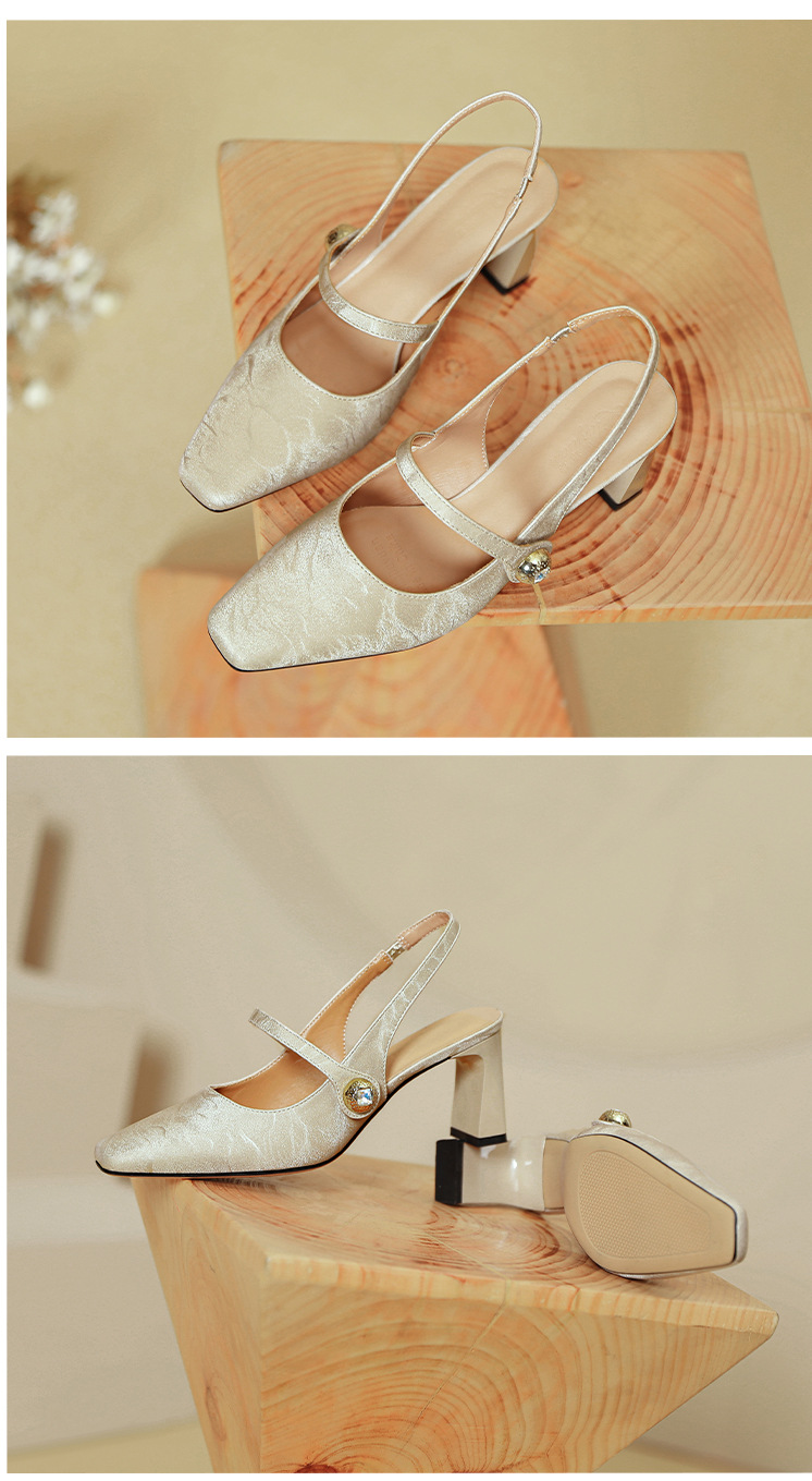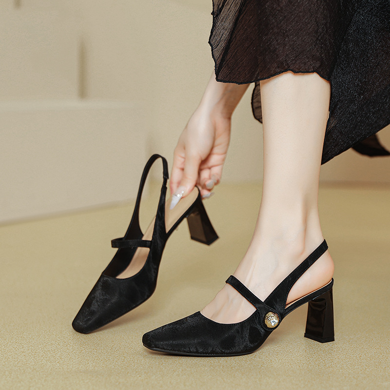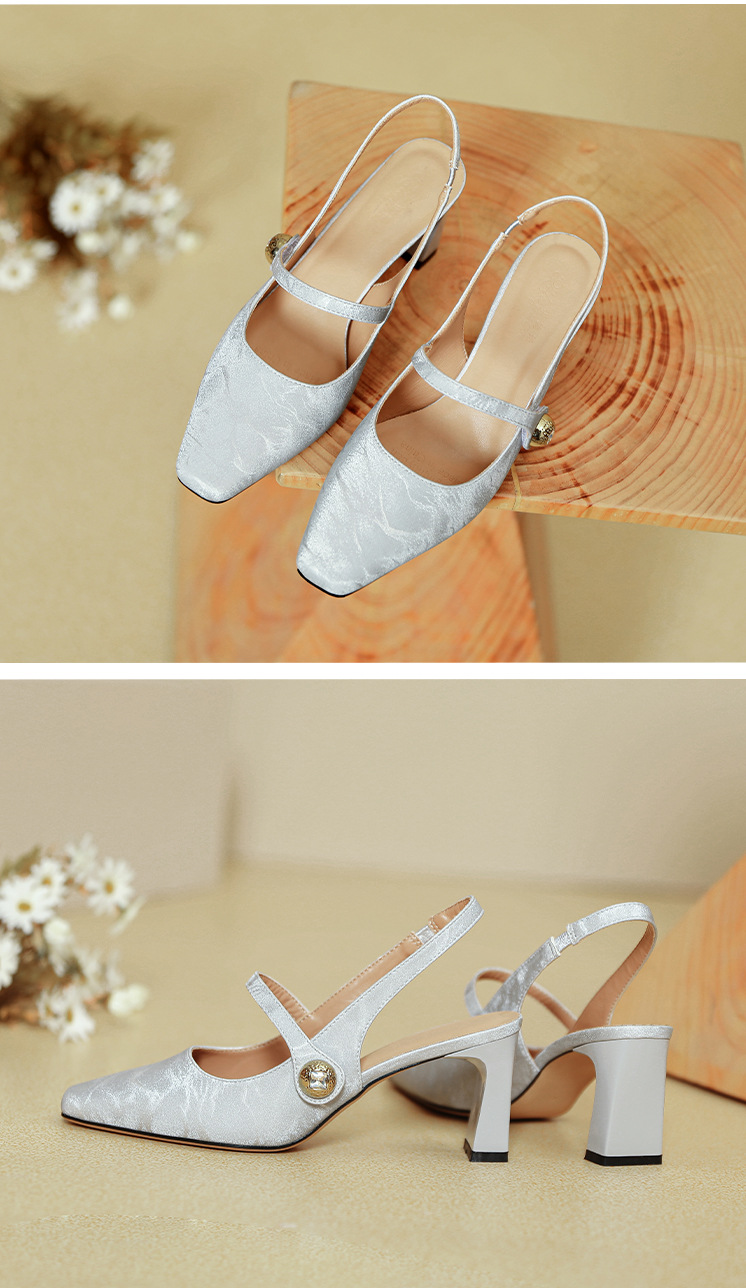 여성용 바오터우 샌들 여름 하이힐 2025 새로운 프렌치 메리 제인 슈즈 실버 원라인 스트랩 두꺼운 굽 하이힐스토어 가기