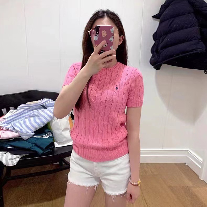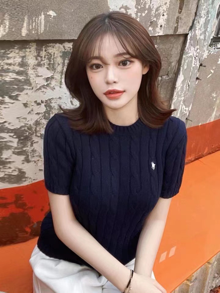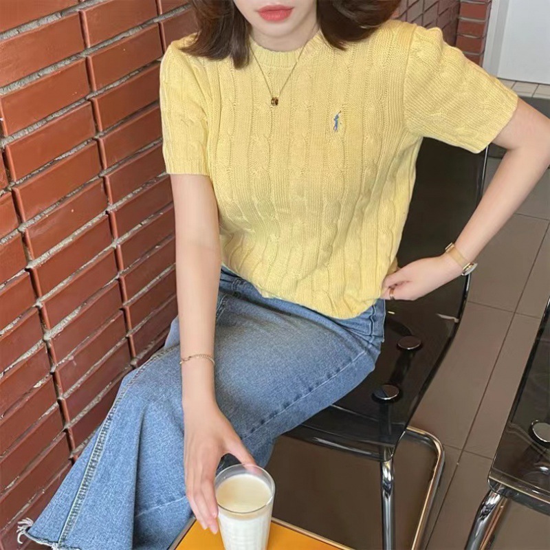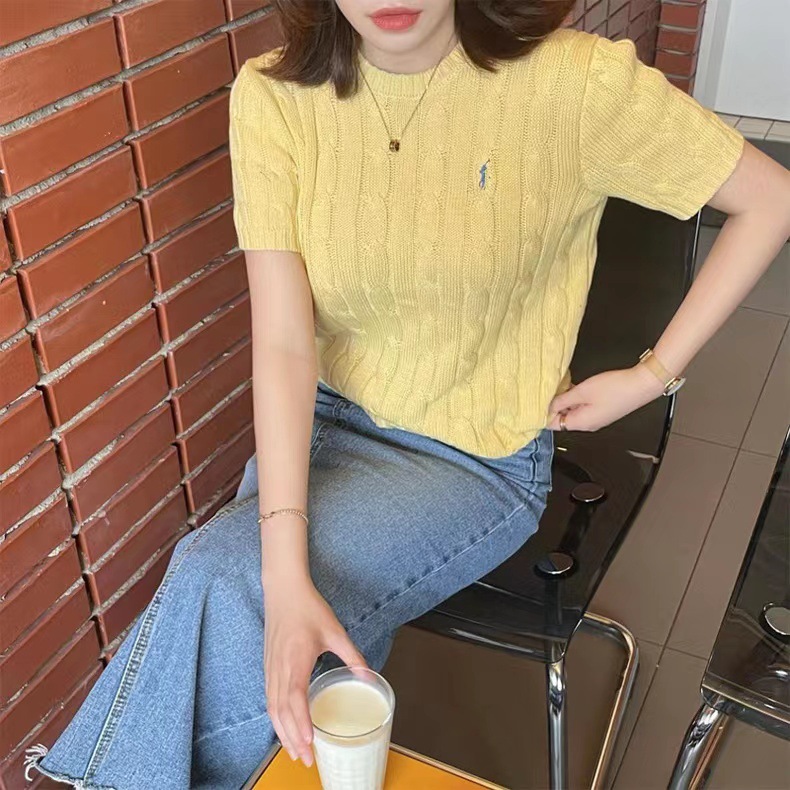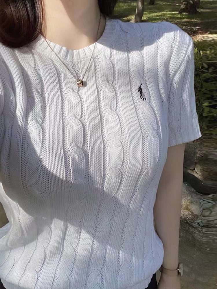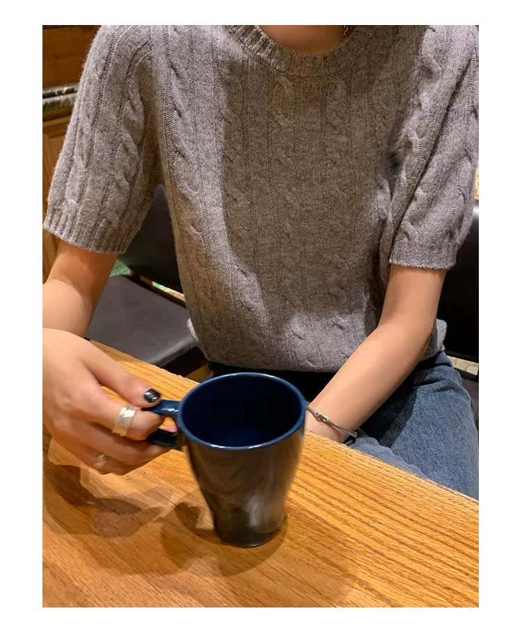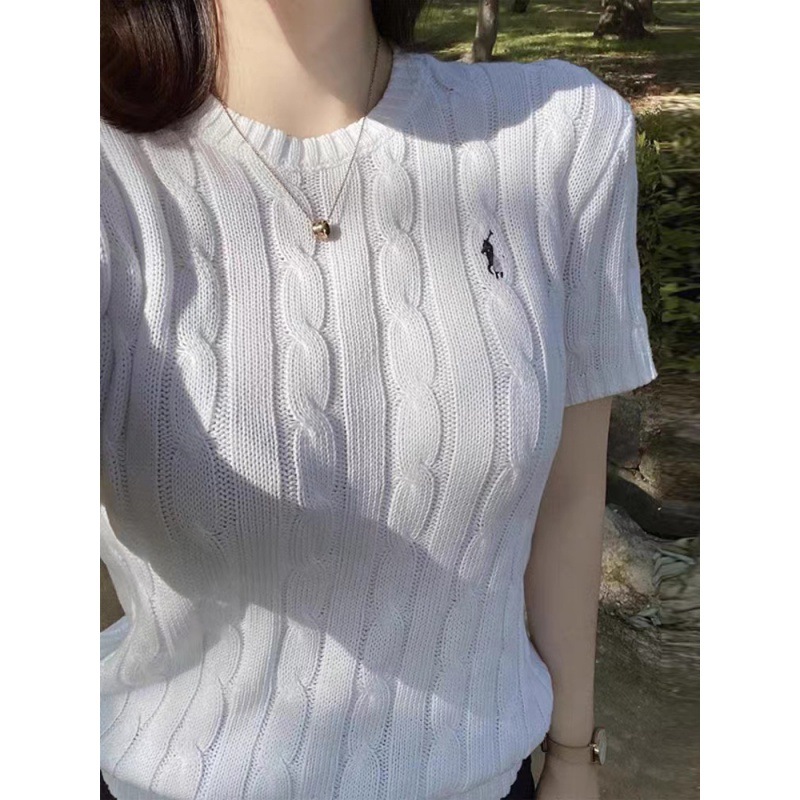 고급스러운 라운드넥 트위스트 마크 짧은 소매 울 여성 상의 니트 티셔츠 공장스토어 가기