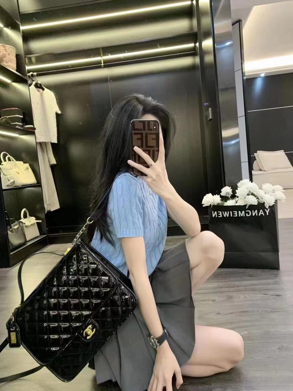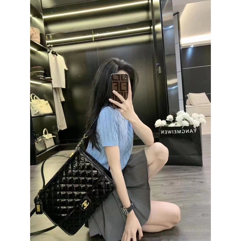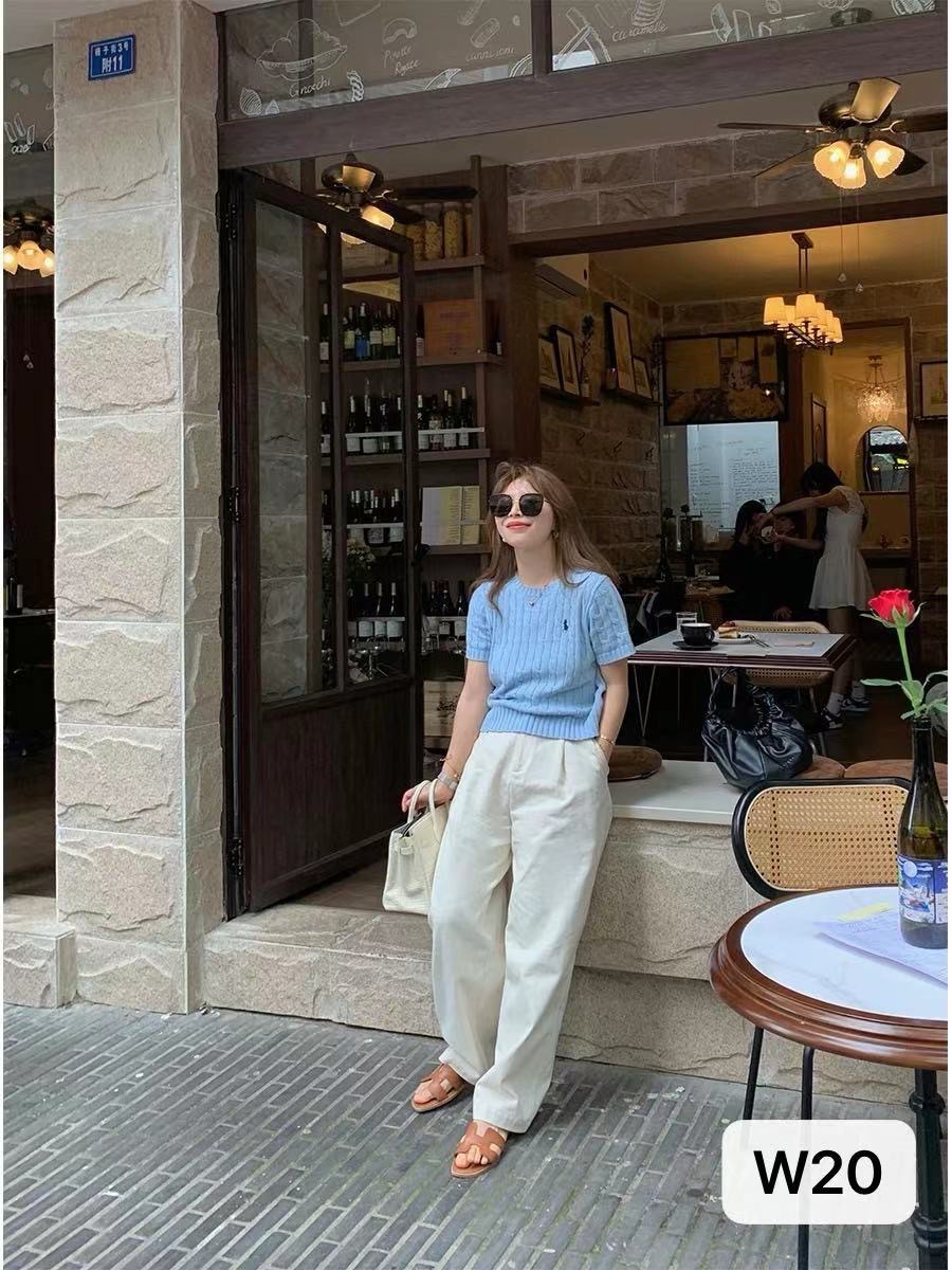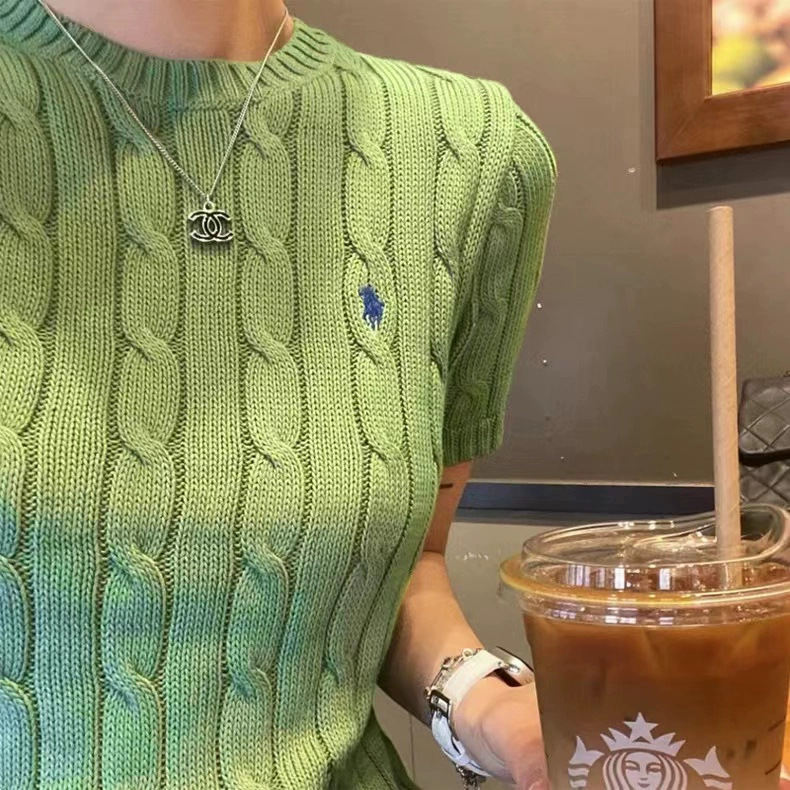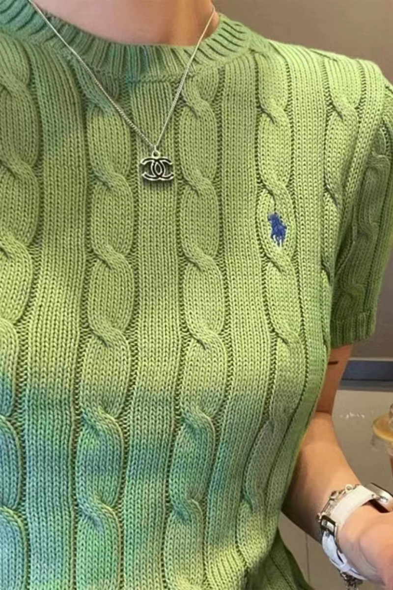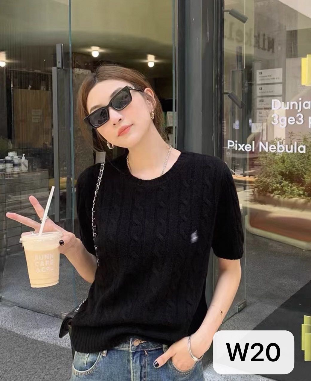 고급스러운 라운드넥 트위스트 마크 짧은 소매 울 여성 상의 니트 티셔츠 공장스토어 가기