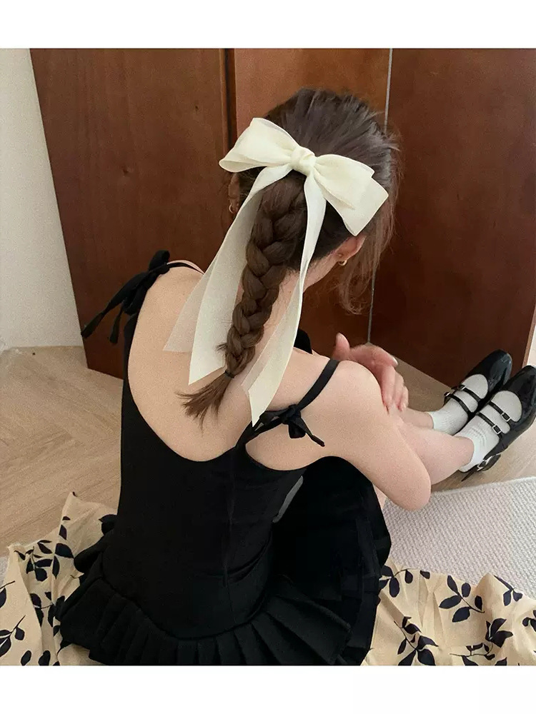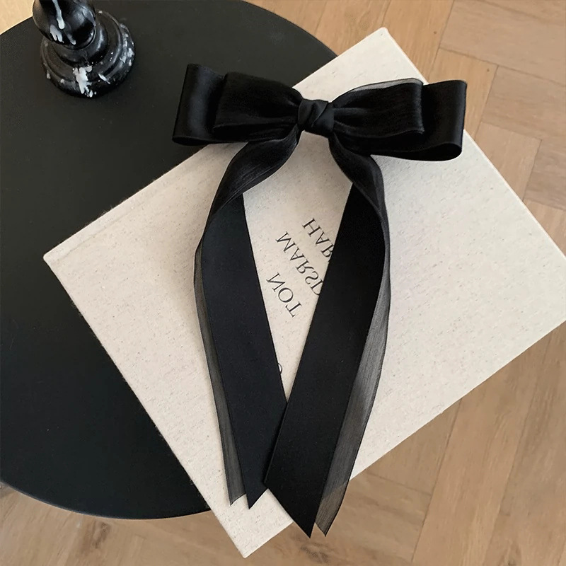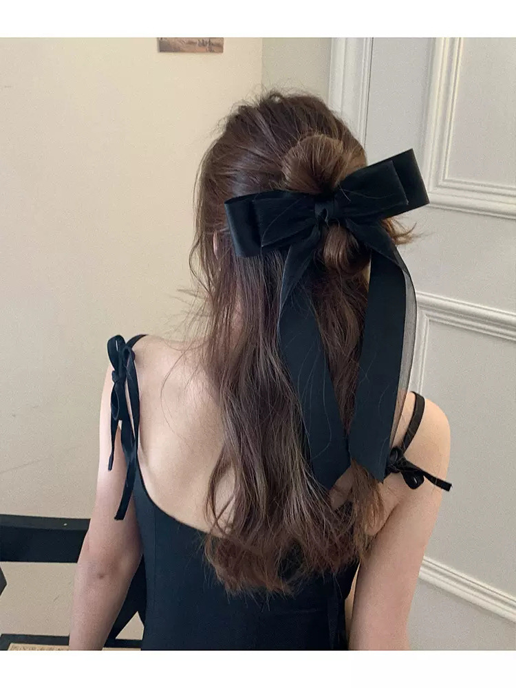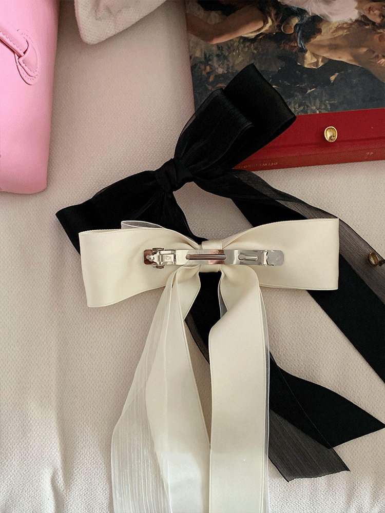 • 3959-2-블랙 쉬폰 리본 스프링 클립