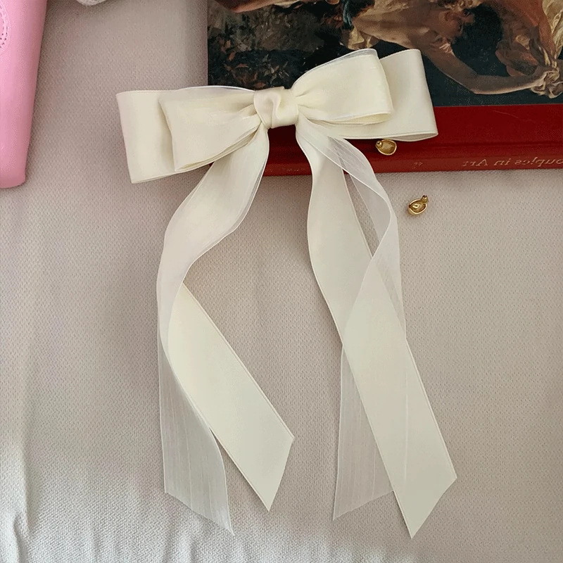 • 3959-1-베이지 시폰 리본 스프링 클립