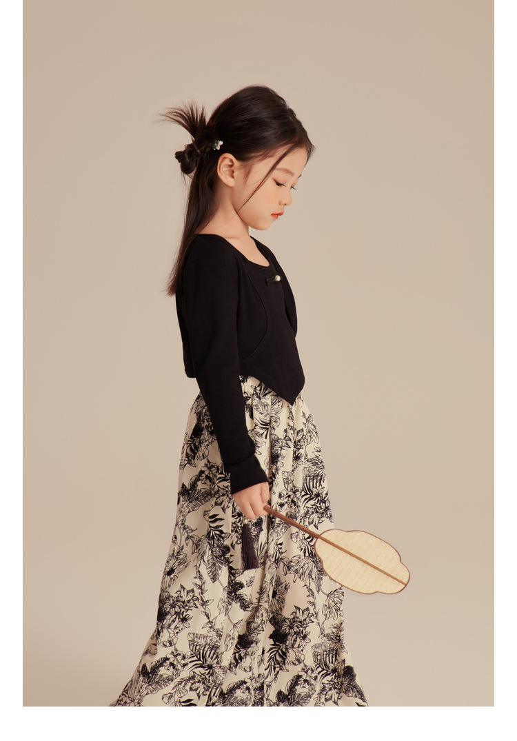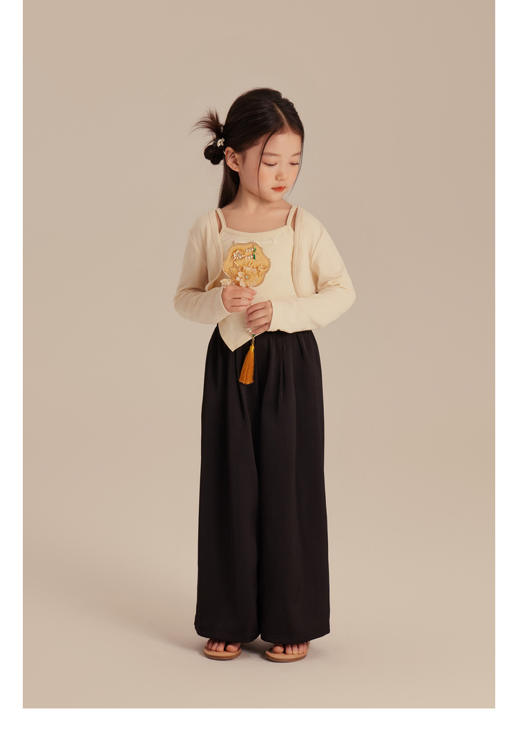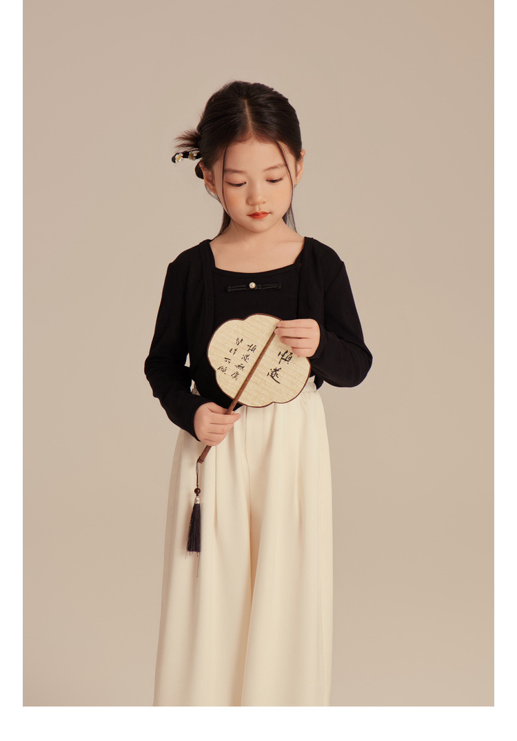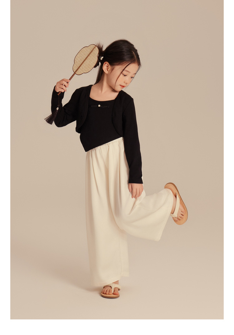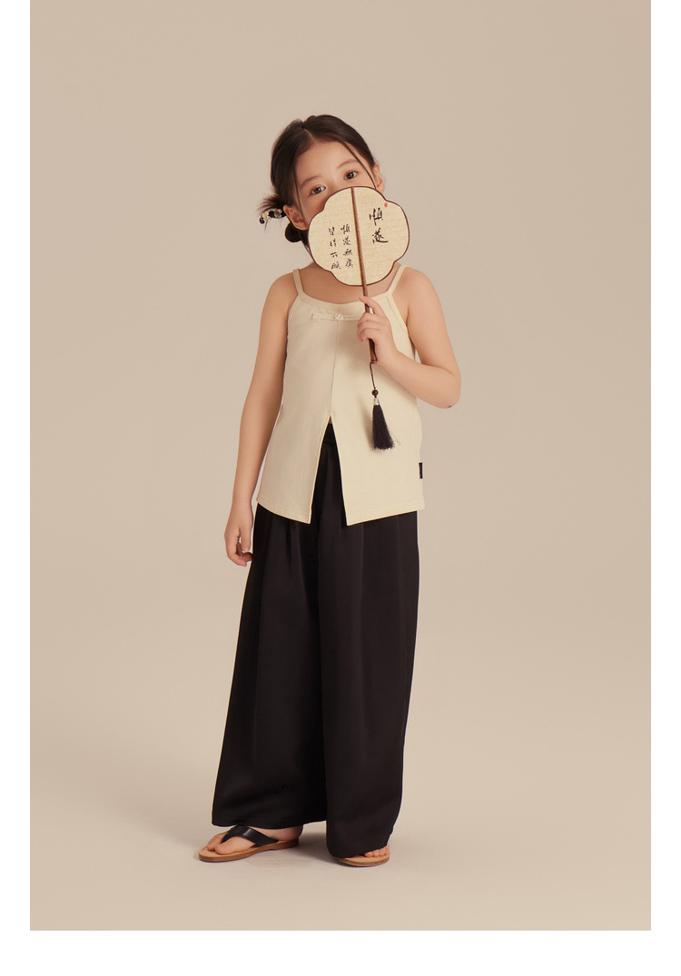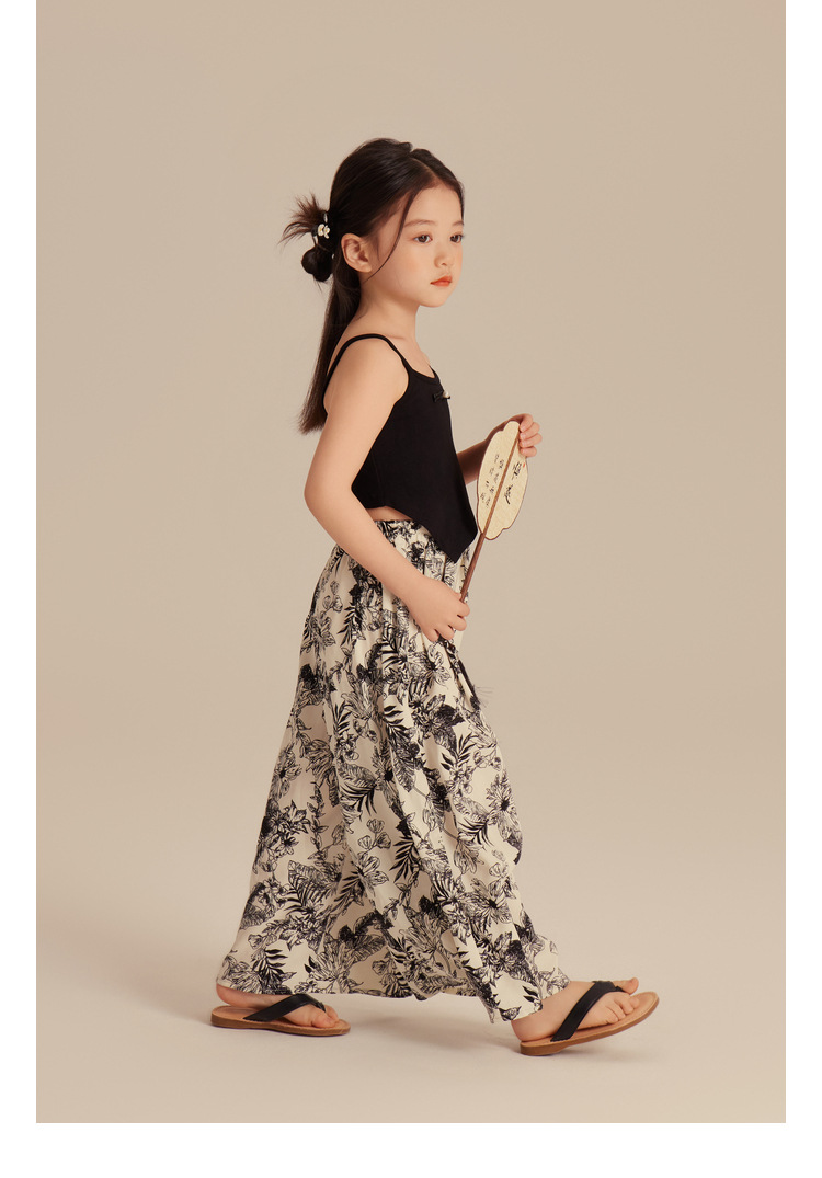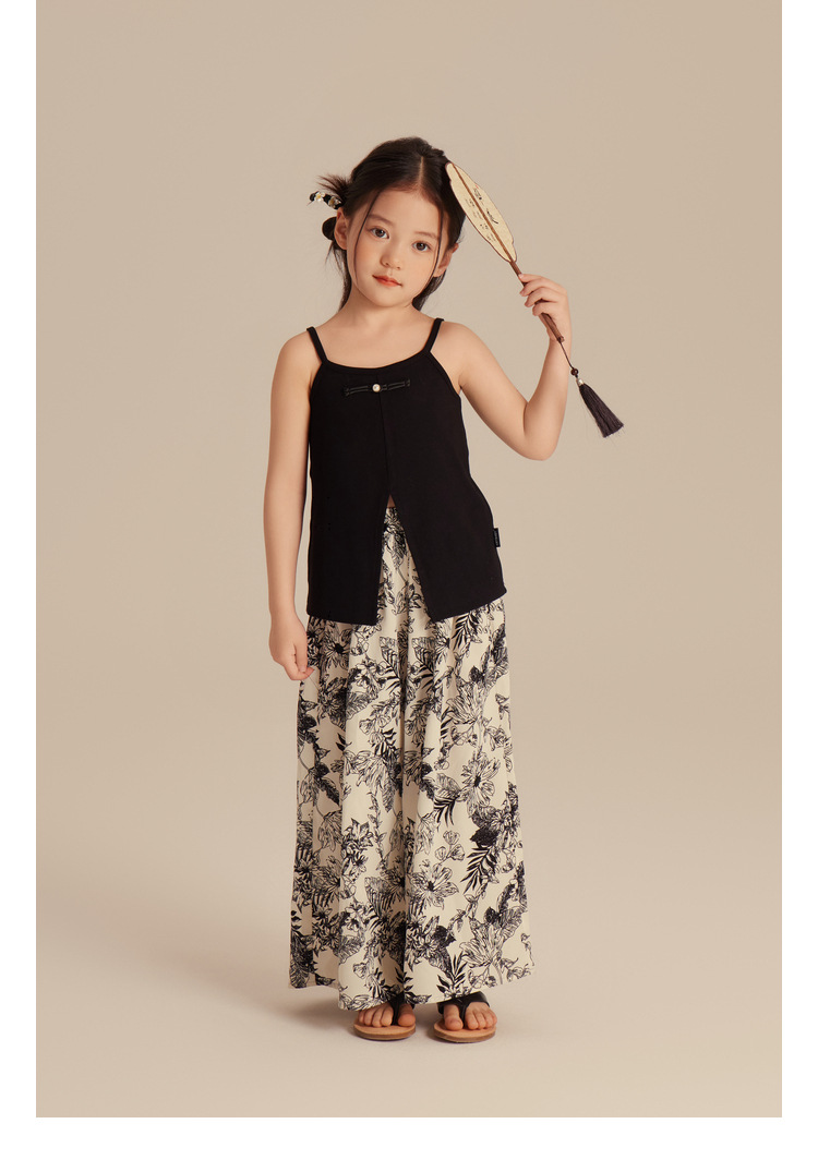 Amybaby 소녀 세트 2024 새로운 여름 어린이 새로운 중국 잉크 국가 스타일 원피스 넓은 다리 바지스토어 가기