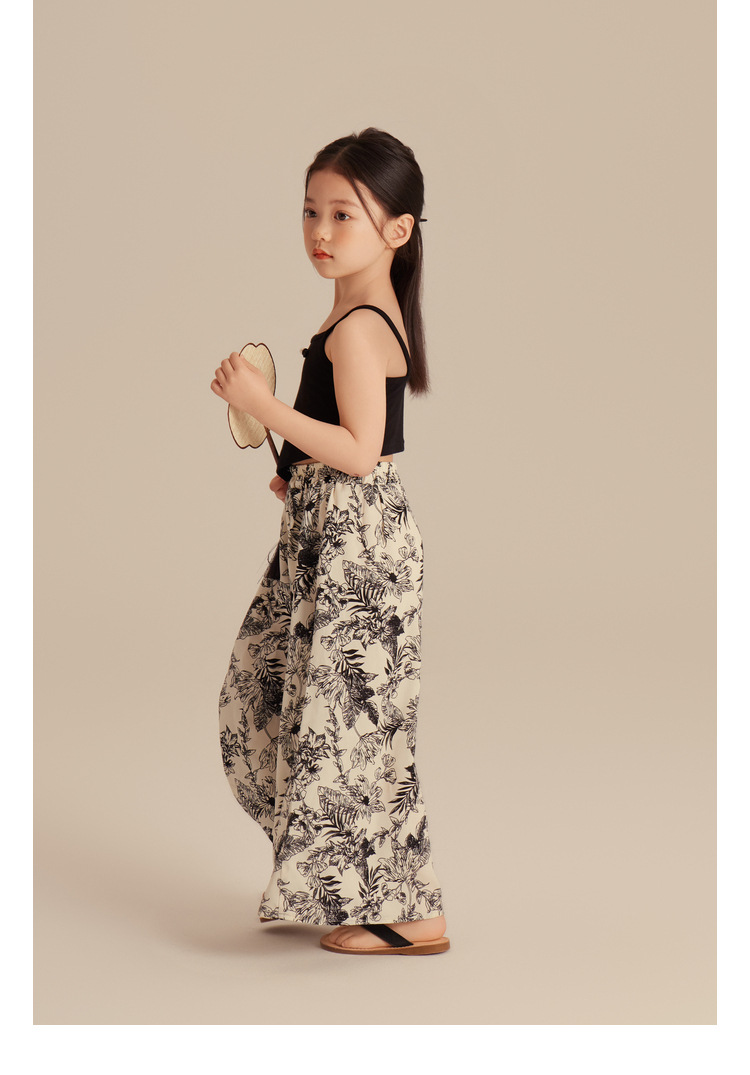 Amybaby 소녀 세트 2024 새로운 여름 어린이 새로운 중국 잉크 국가 스타일 원피스 넓은 다리 바지