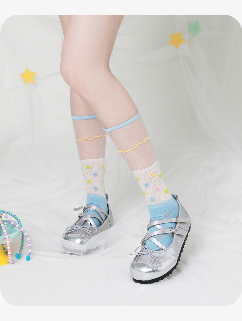 여름 얇은 통기성 유리 실크 튜브 양말 여성 달콤한 거품 레이스 더미 양말 여자 종아리 양말스토어 가기
