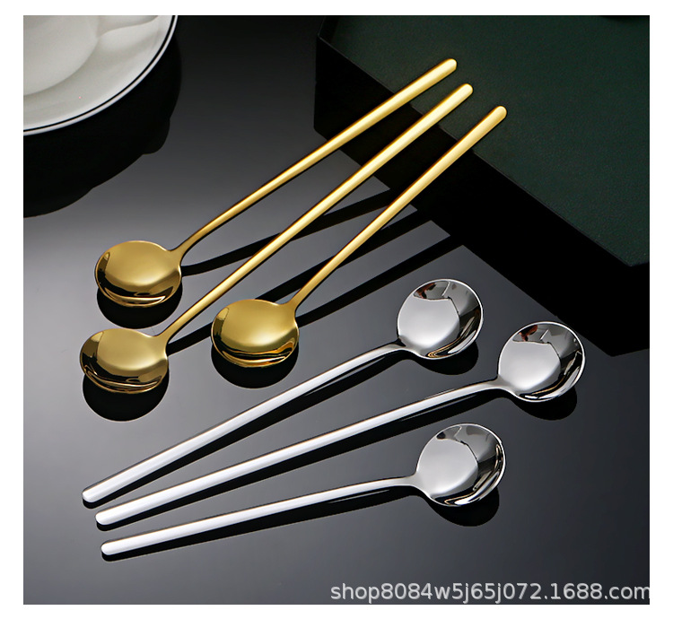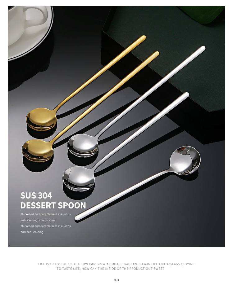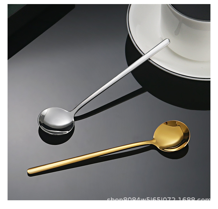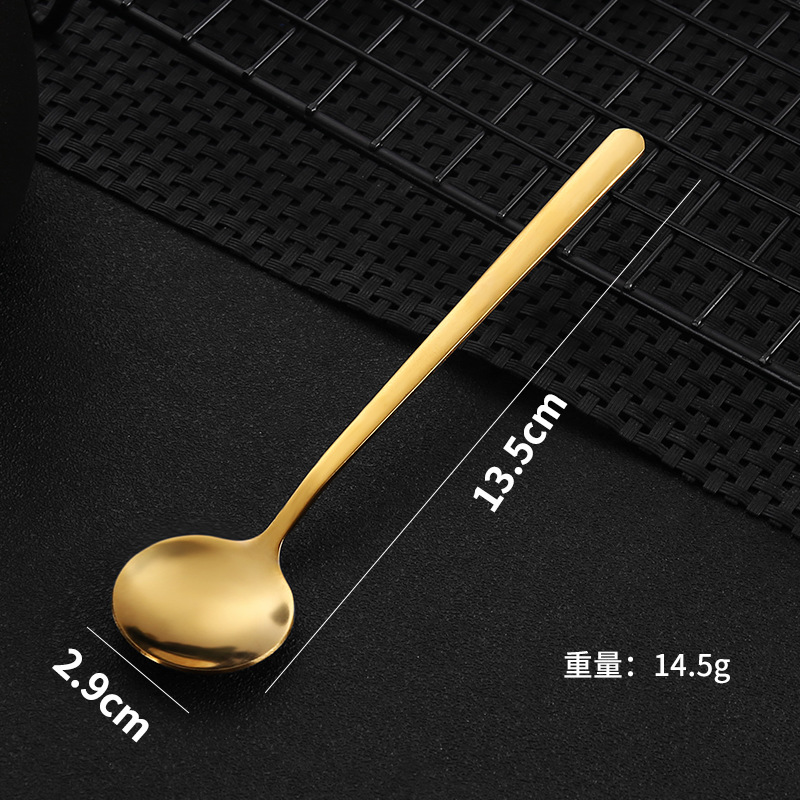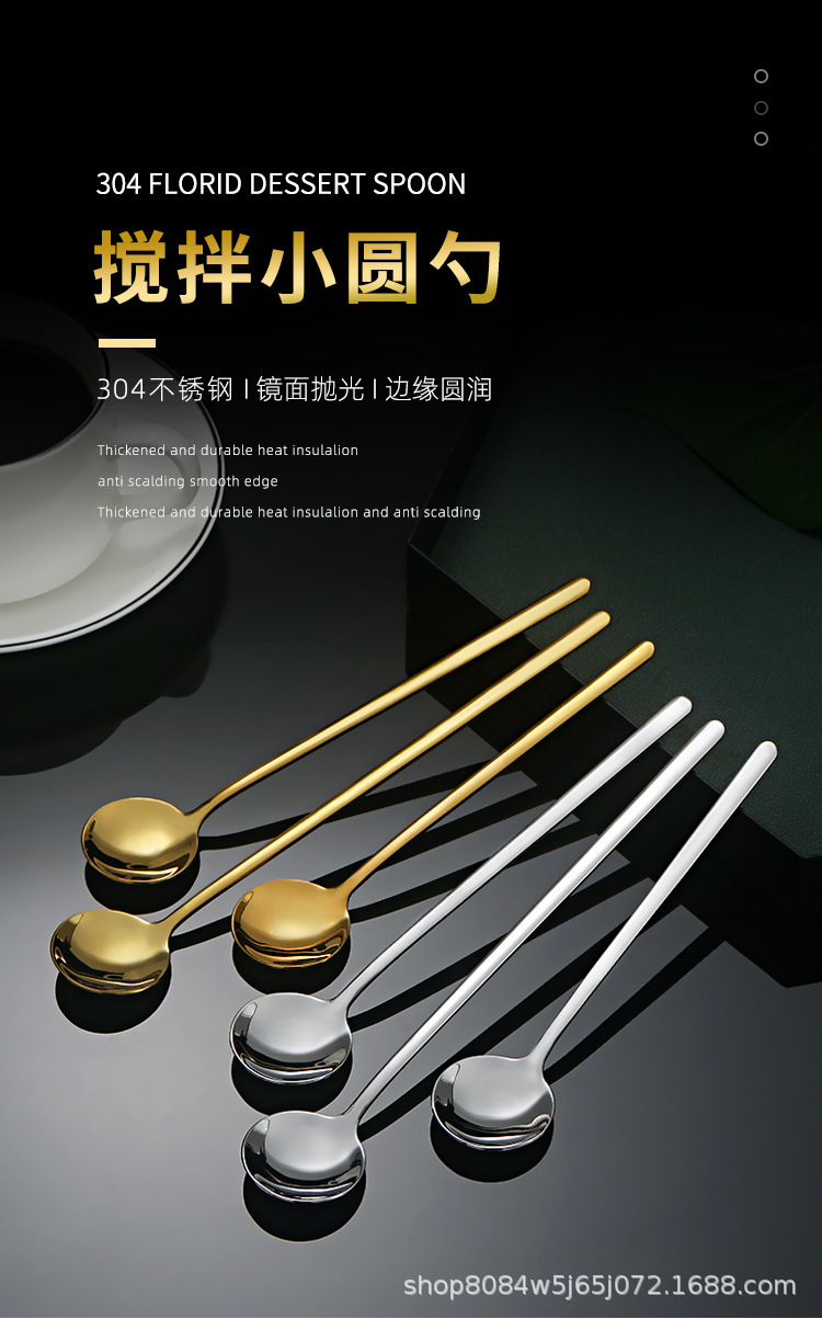 304 스테인레스 스틸 골드 작은 둥근 스푼 커피 스푼 롱 핸들 새의 둥지 교반 스푼 홈 허니 디저트 스푼 크로스 보더스토어 가기