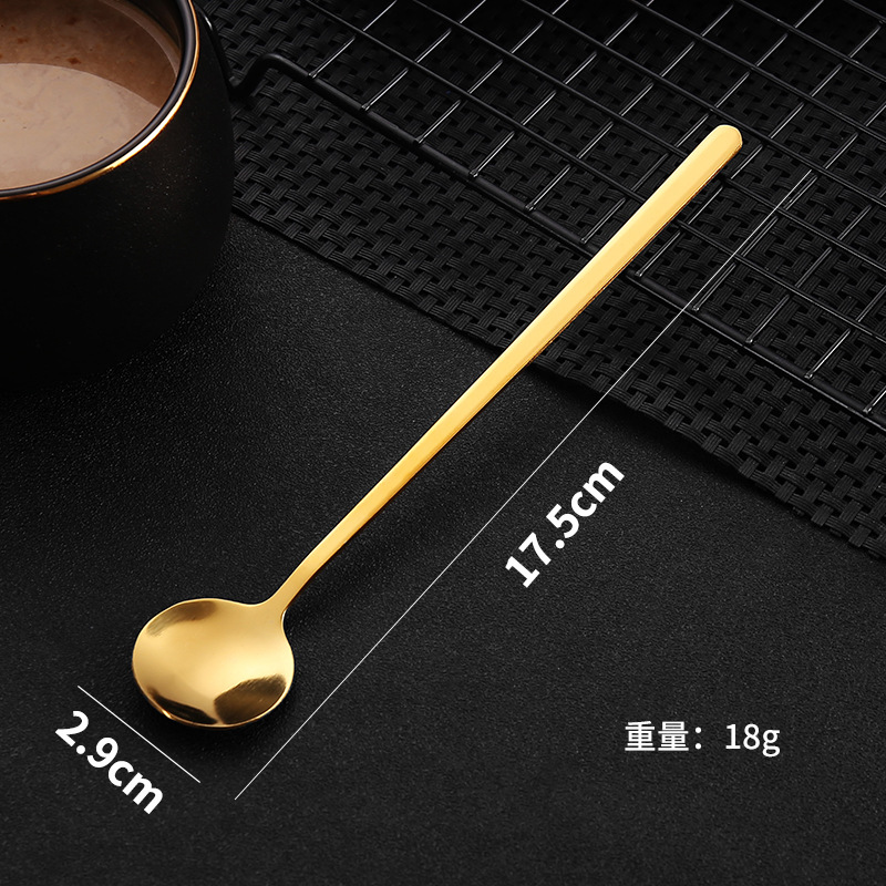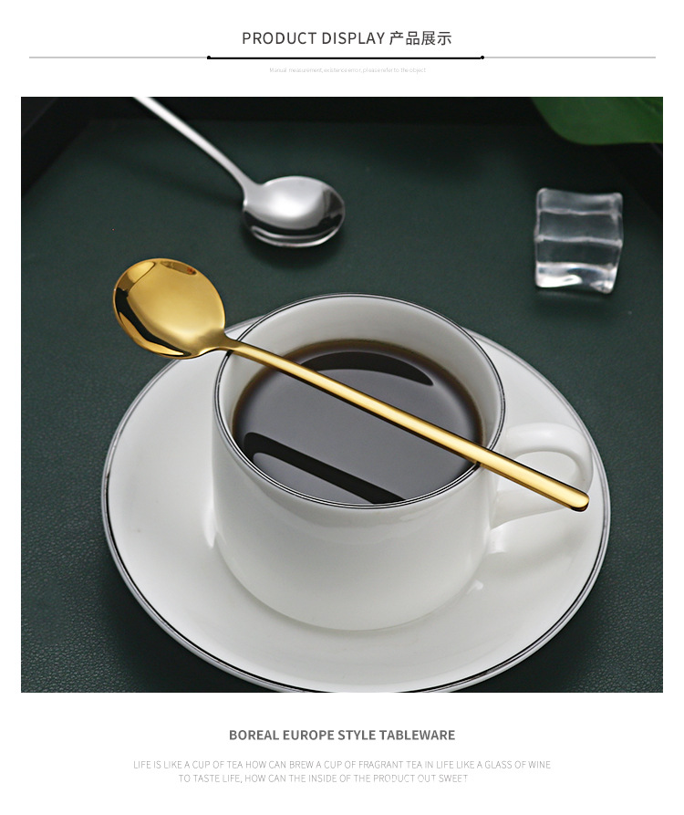 304 스테인레스 스틸 골드 작은 둥근 스푼 커피 스푼 롱 핸들 새의 둥지 교반 스푼 홈 허니 디저트 스푼 크로스 보더