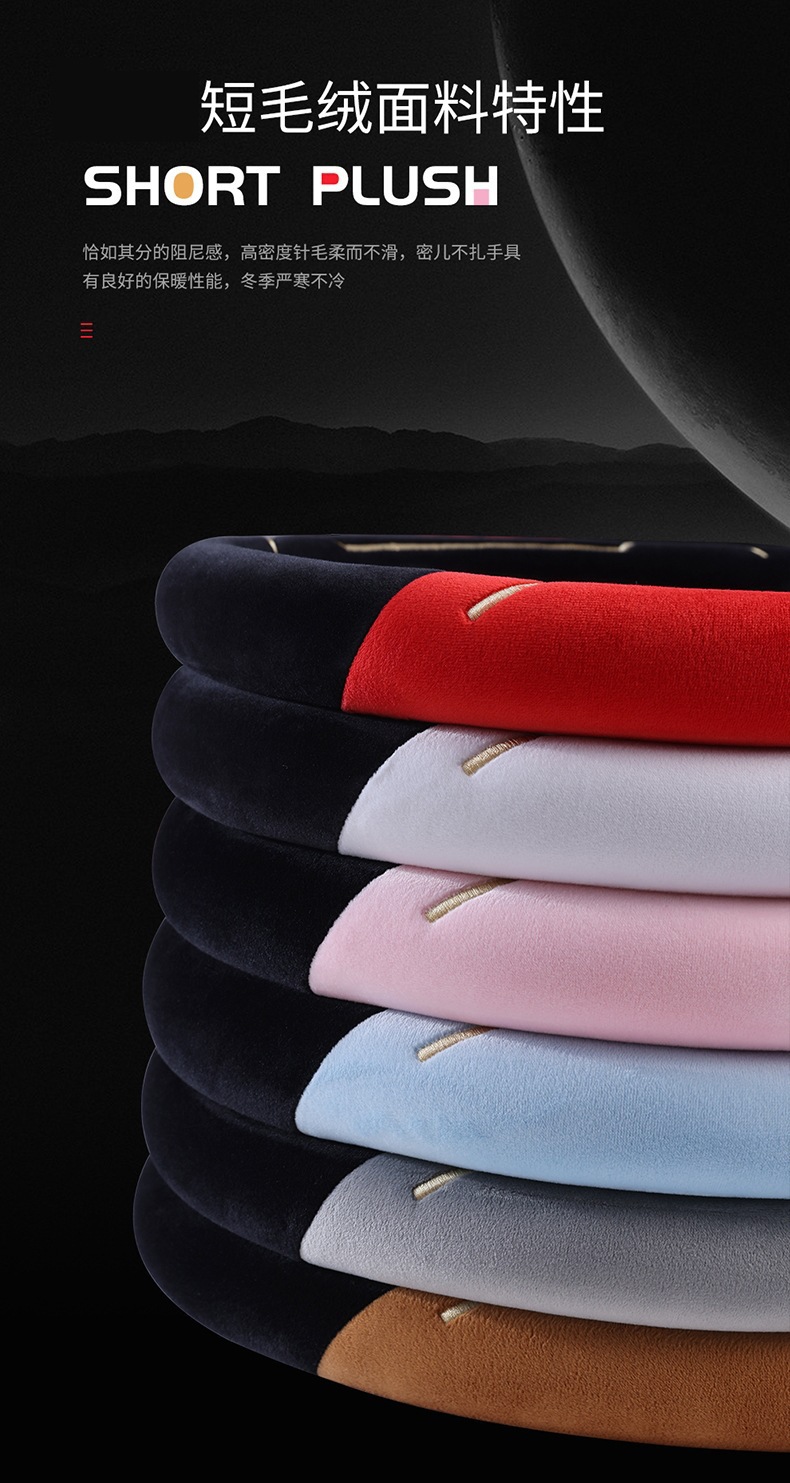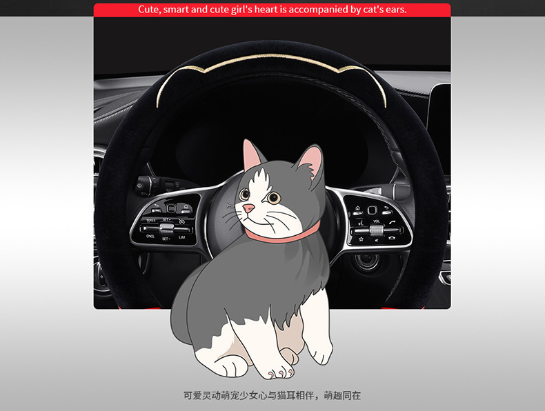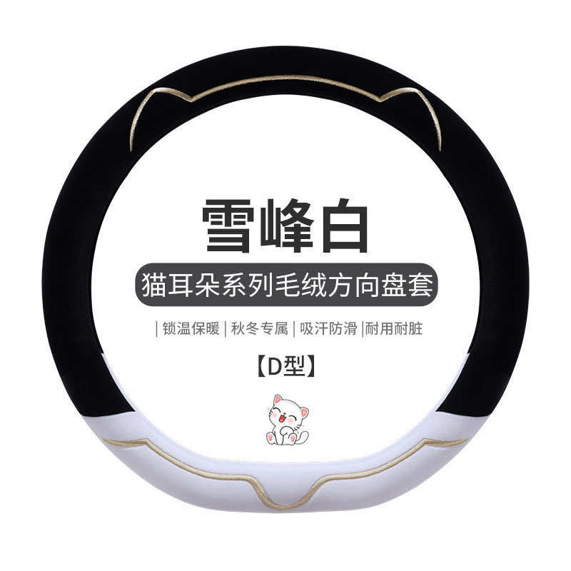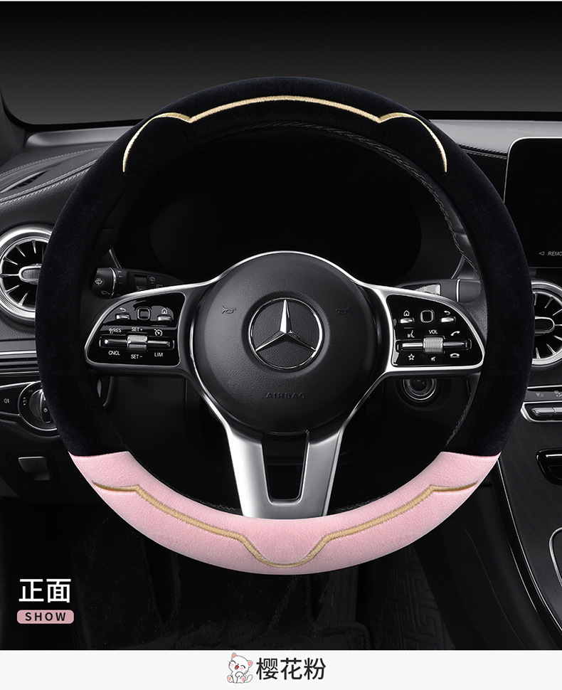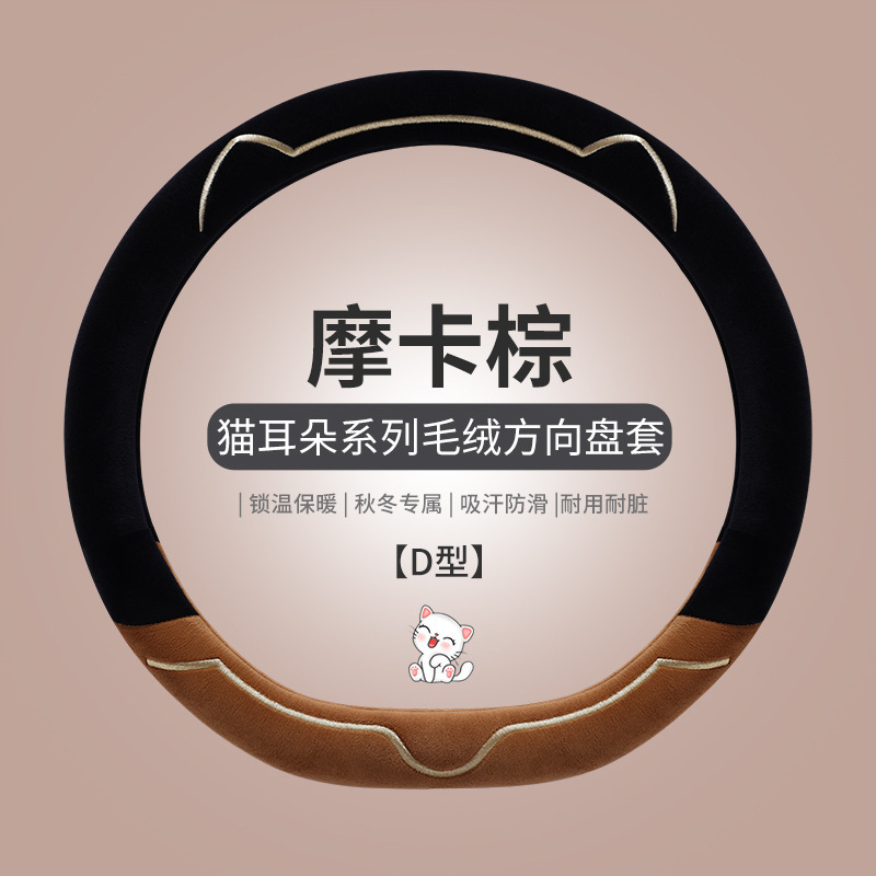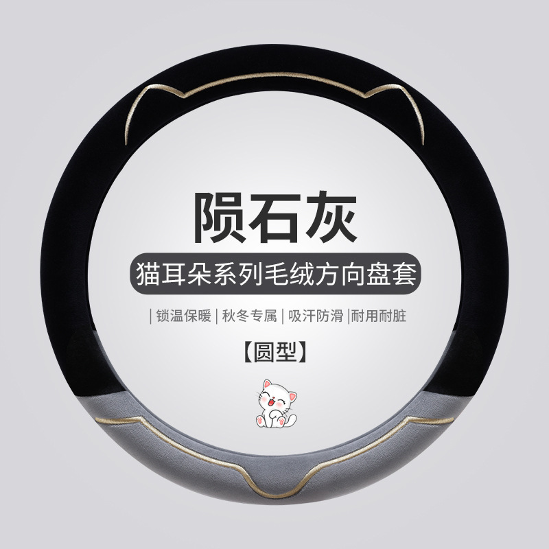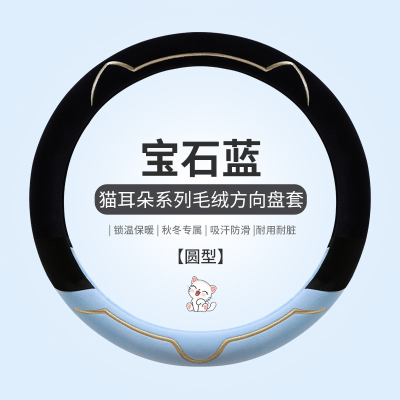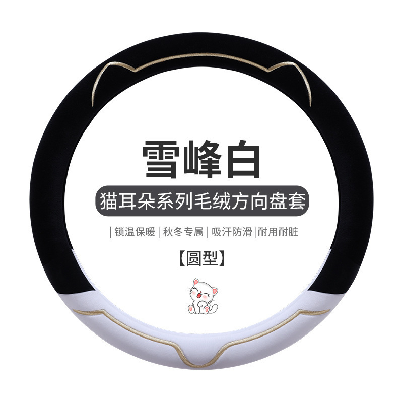새로운 가을과 겨울 대비 색상 짧은 봉제 자동차 스티어링 휠 커버 만화 귀여운 고양이 귀 자동차 SUV 자동차 핸들 커버스토어 가기