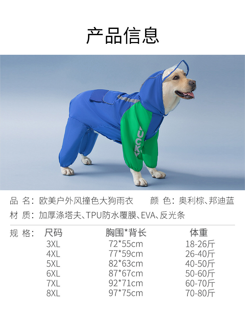 사계절용 대형견 레인코트, 중대형견용 골든 리트리버 외출용 네발 방수 애완견 옷스토어 가기