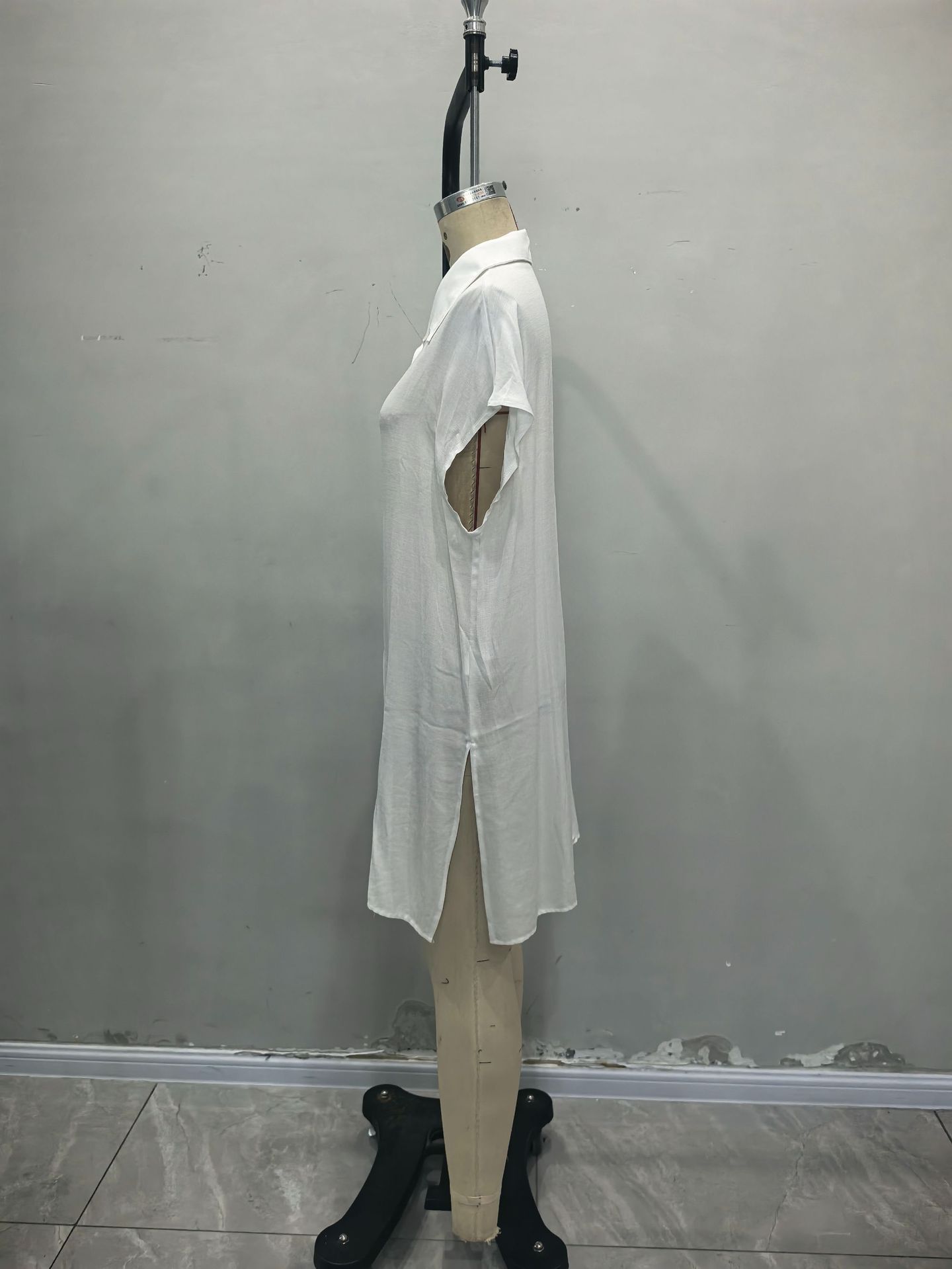 크로스보더 여성용 솔리드 컬러 롱 민소매 하이 슬릿 시스루 비치 자외선 차단 루즈핏 셔츠 여성용 블라우스 탑