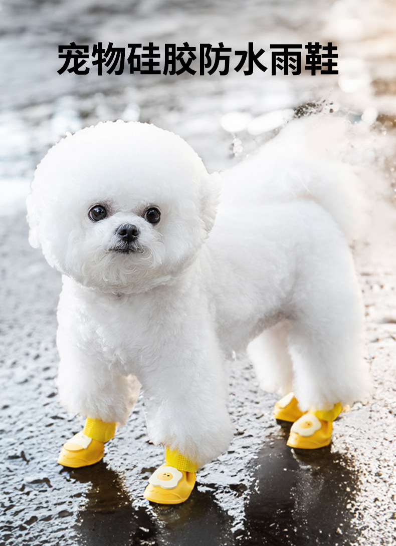 새로운 개 외출 방수 귀여운 계란 아기 실리콘 장화 중소 규모의 개 비의 날 착용 방지 미끄럼 방지 애완 동물 신발