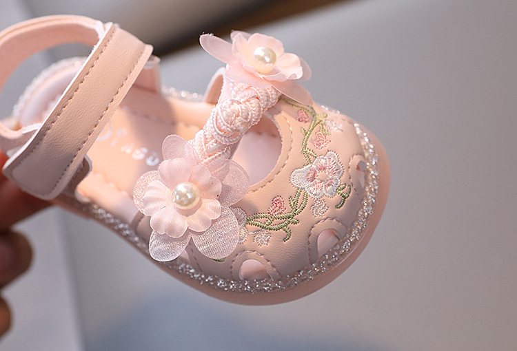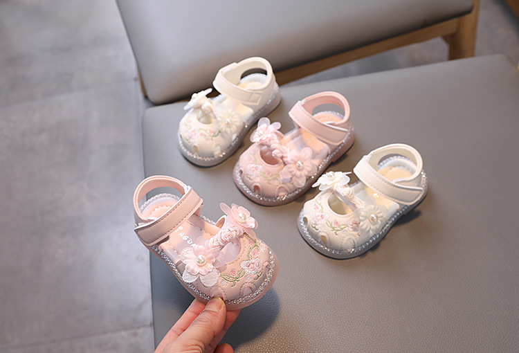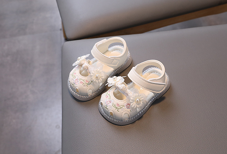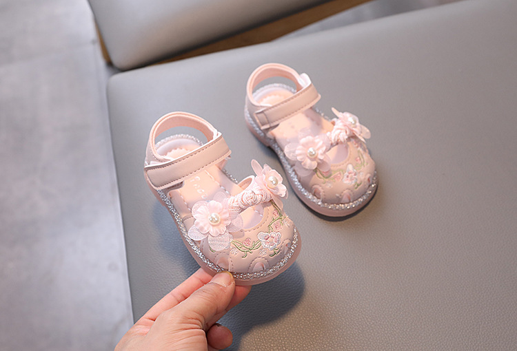 여름 새로운 아기 소녀 발가락 샌들 유아 부드러운 밑창 유아 신발 미끄럼 방지 킥 공주 신발 자수 Guofeng