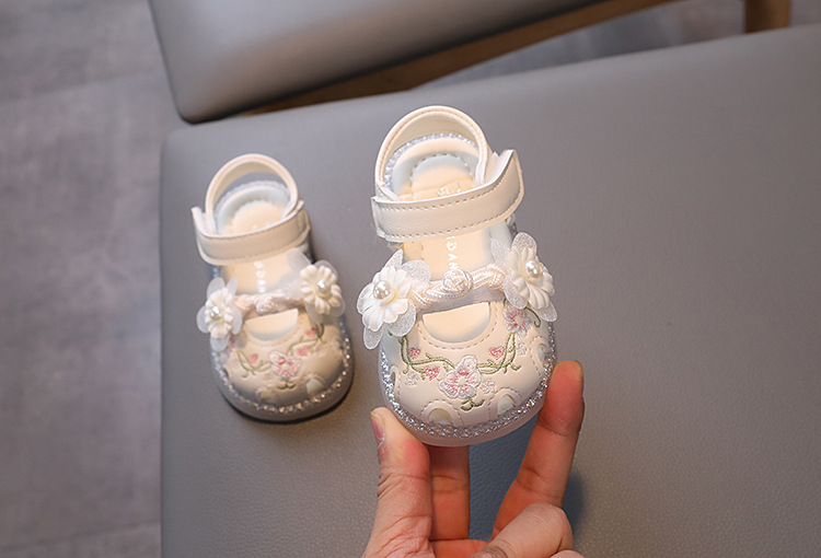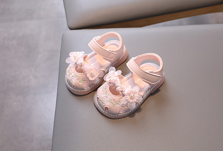여름 새로운 아기 소녀 발가락 샌들 유아 부드러운 밑창 유아 신발 미끄럼 방지 킥 공주 신발 자수 Guofeng스토어 가기