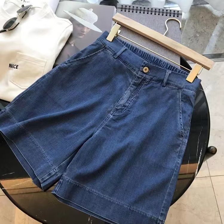 텐셀 데님 반바지 여자 여름 얇은 A-모양 높은 허리 플러스 사이즈 올 매치 느슨한 바지 아이스 실크 와이드 다리 바지스토어 가기