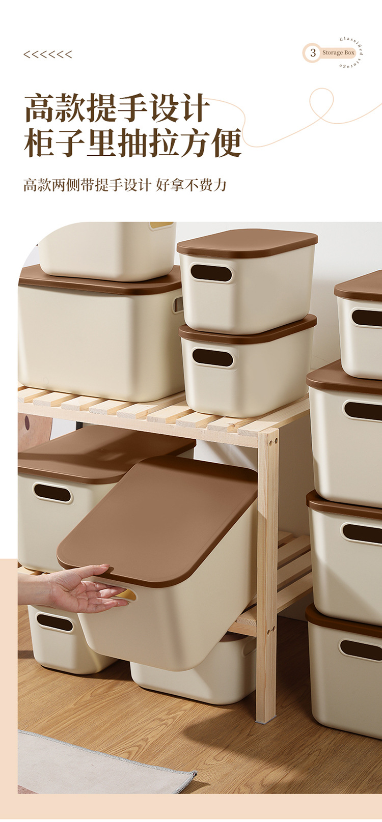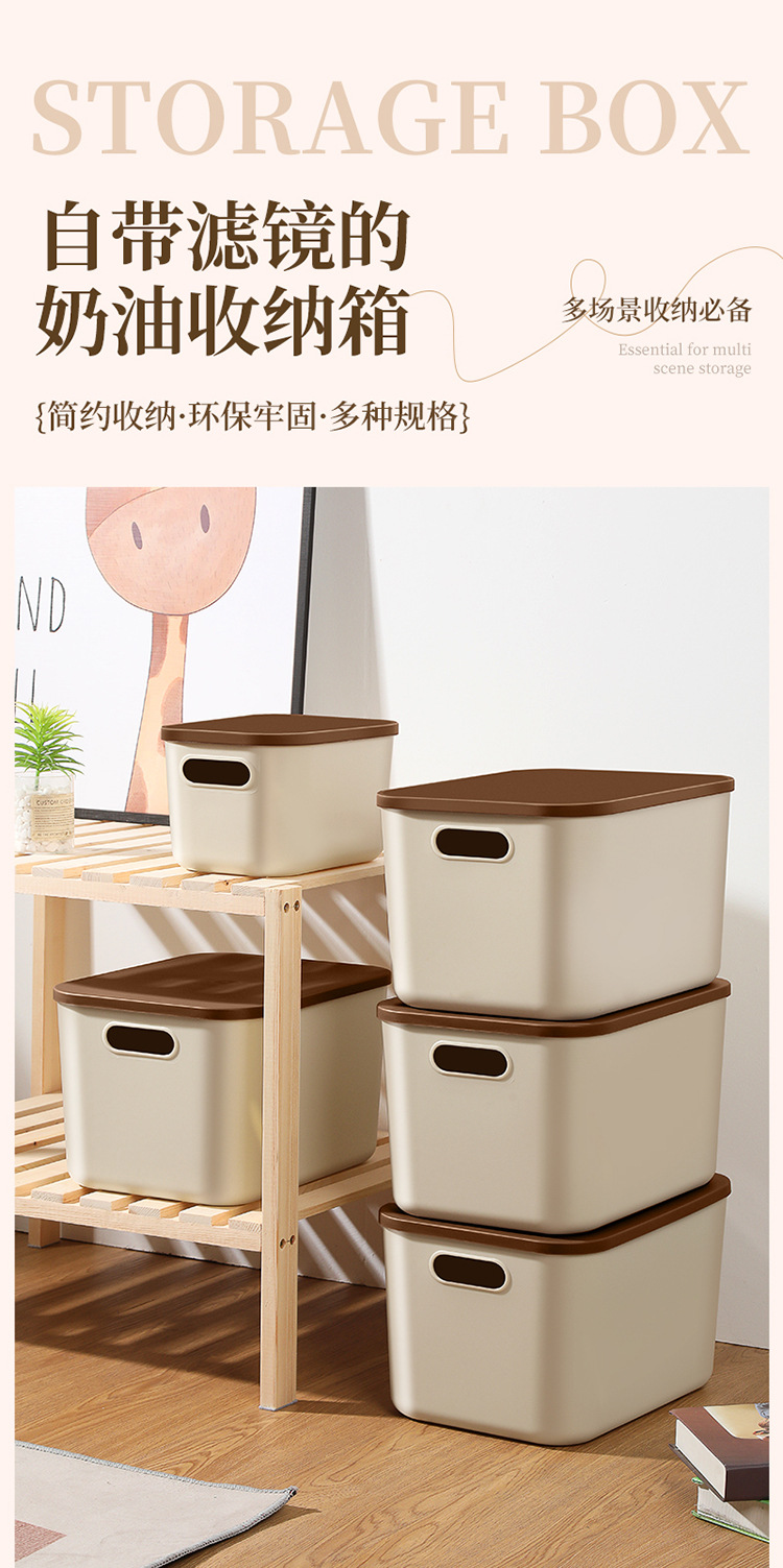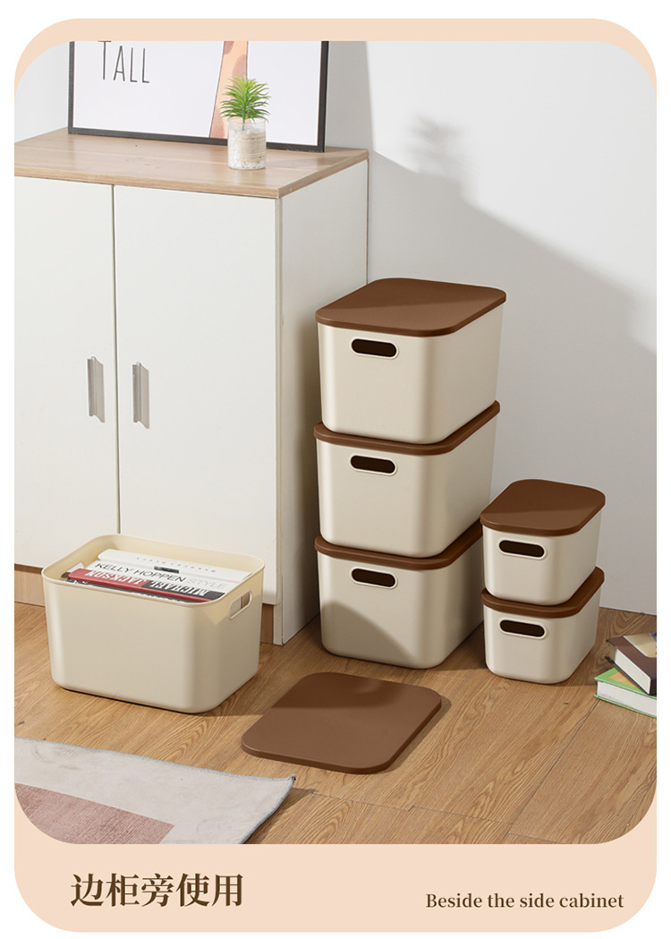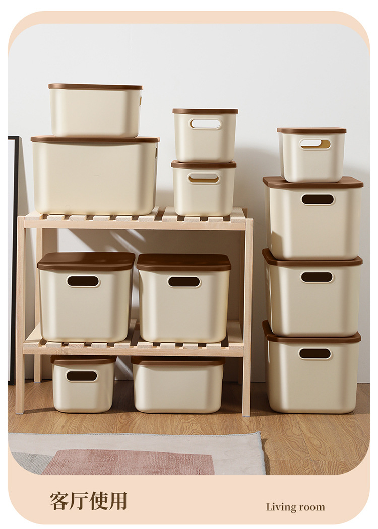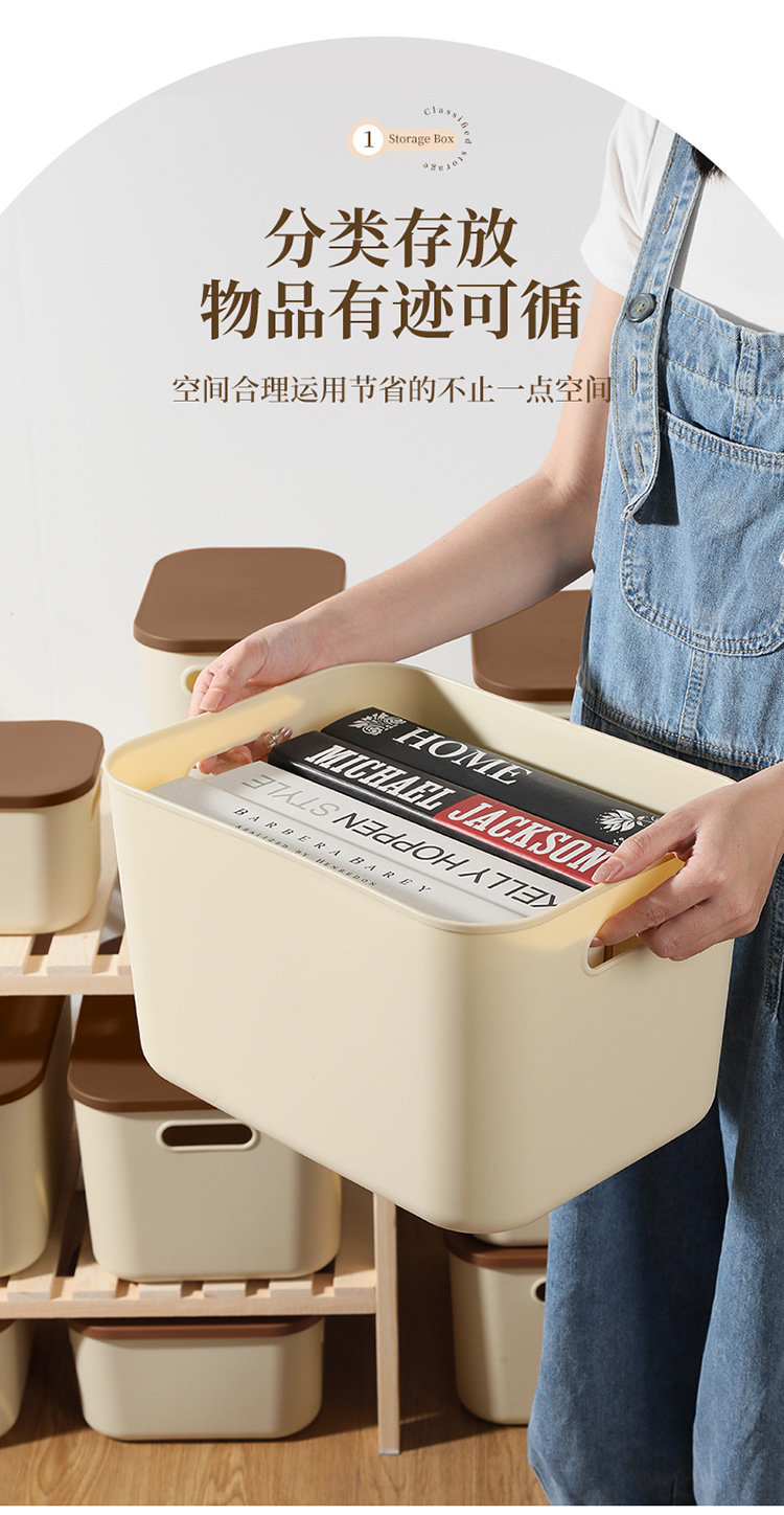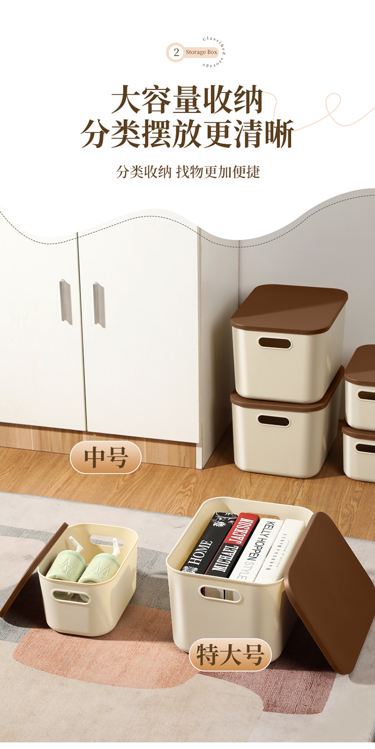 • 뚜껑이 있는 중형 수납함(크림색)