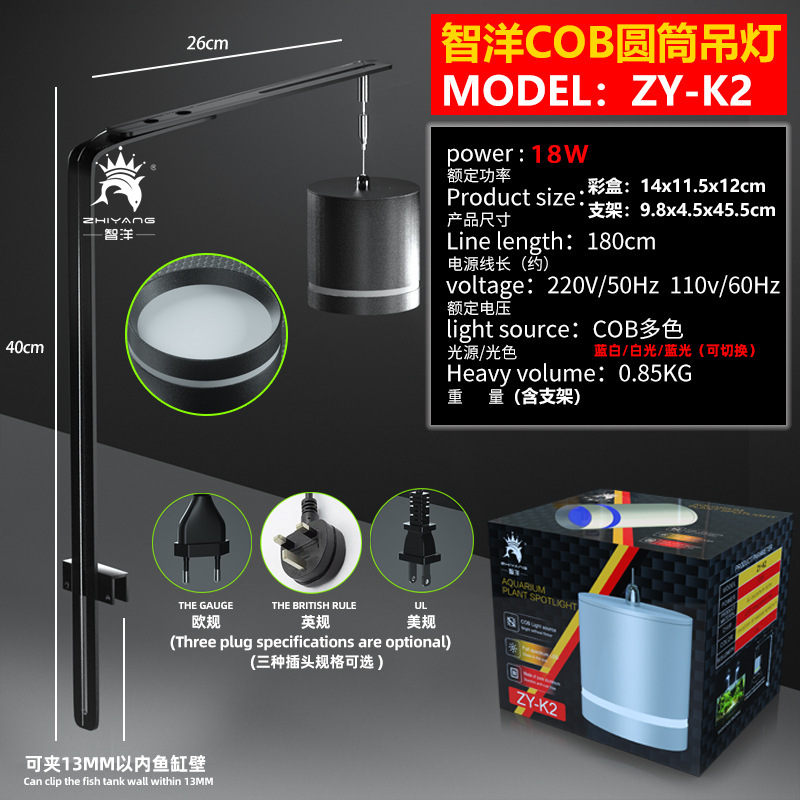 물고기 탱크 샹들리에 물 잔디 슈퍼 화이트 해수 조명 실린더 COB 알루미늄 합금 전체 스펙트럼 샹들리에스토어 가기