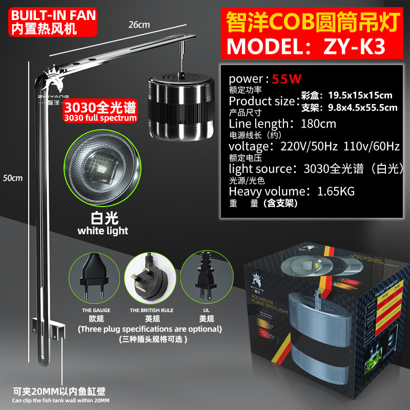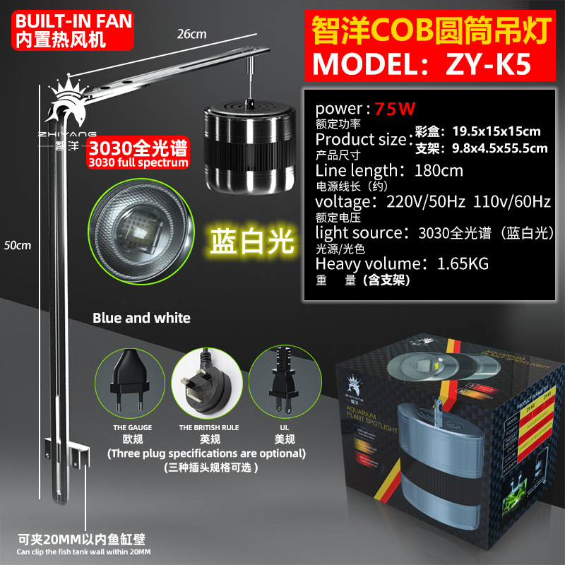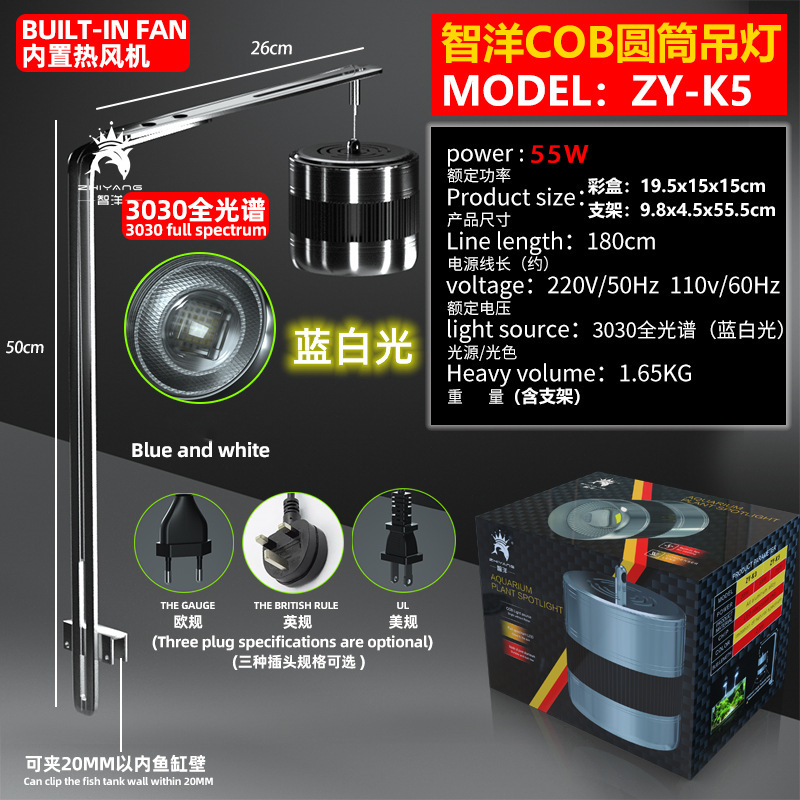 • 파란색과 흰색 빛 ZY-K5 -3030 전체 스펙트럼 샹들리에 라디에이터-55W 실버 블랙