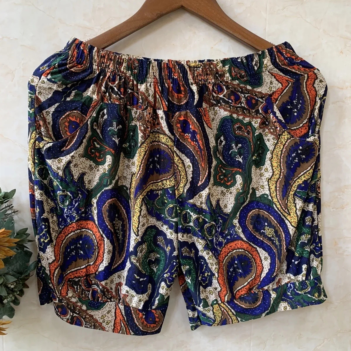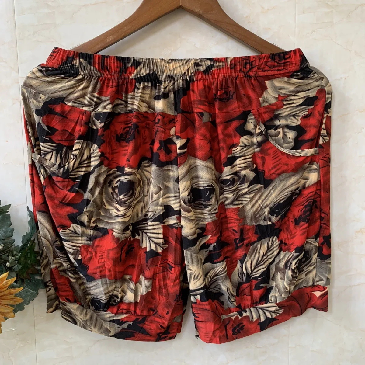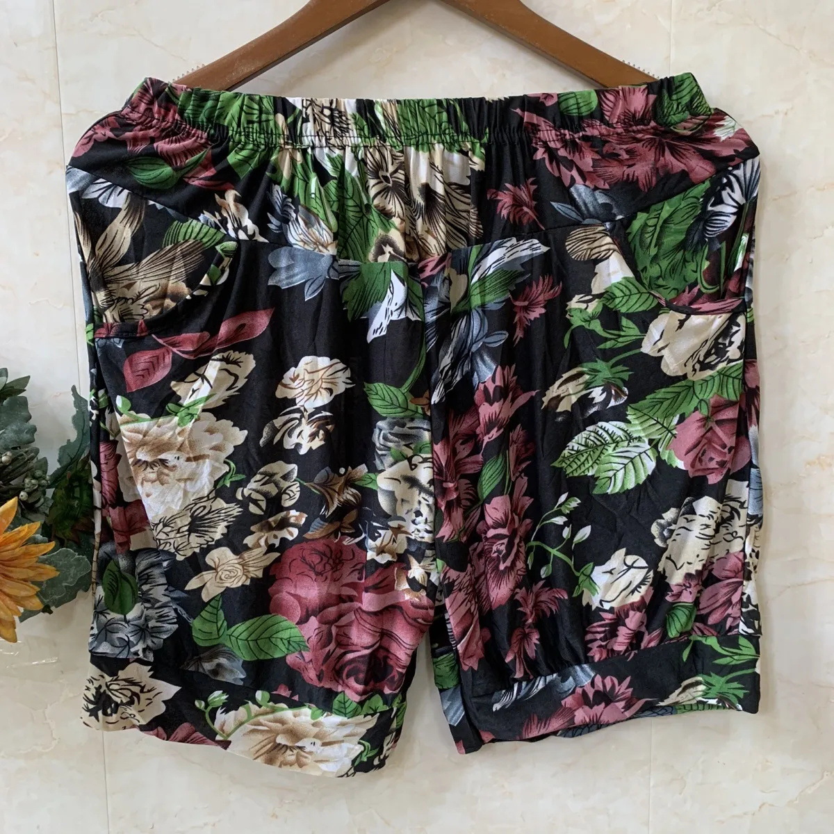 엄마의 파자마 바지 여자 여름 짧은 바지 홈 바지 꽃 꽃 탄성 느슨한 중년 및 노인을위한 3 점 얇은 에어컨 바지