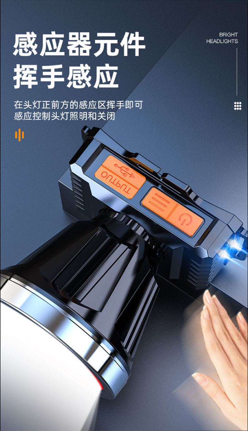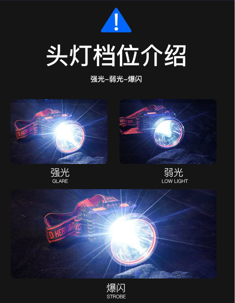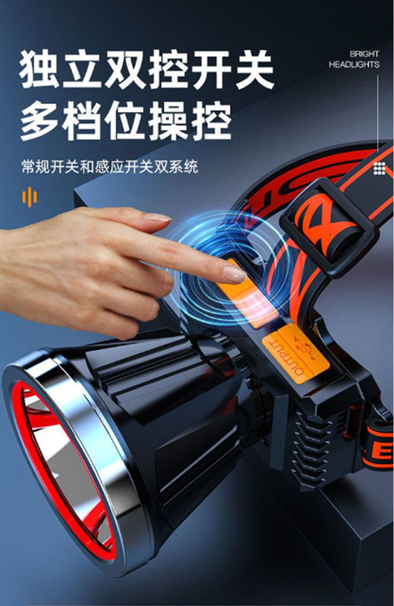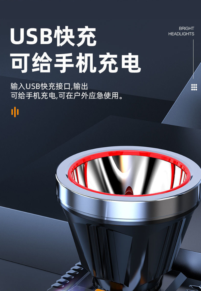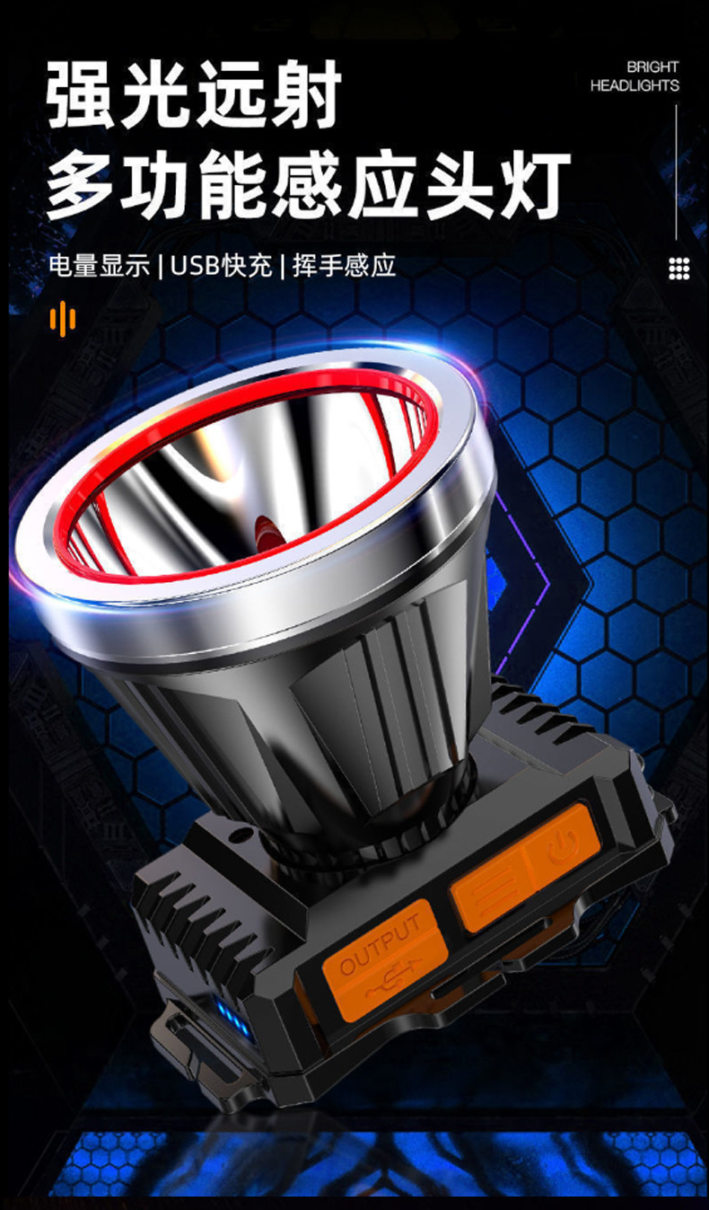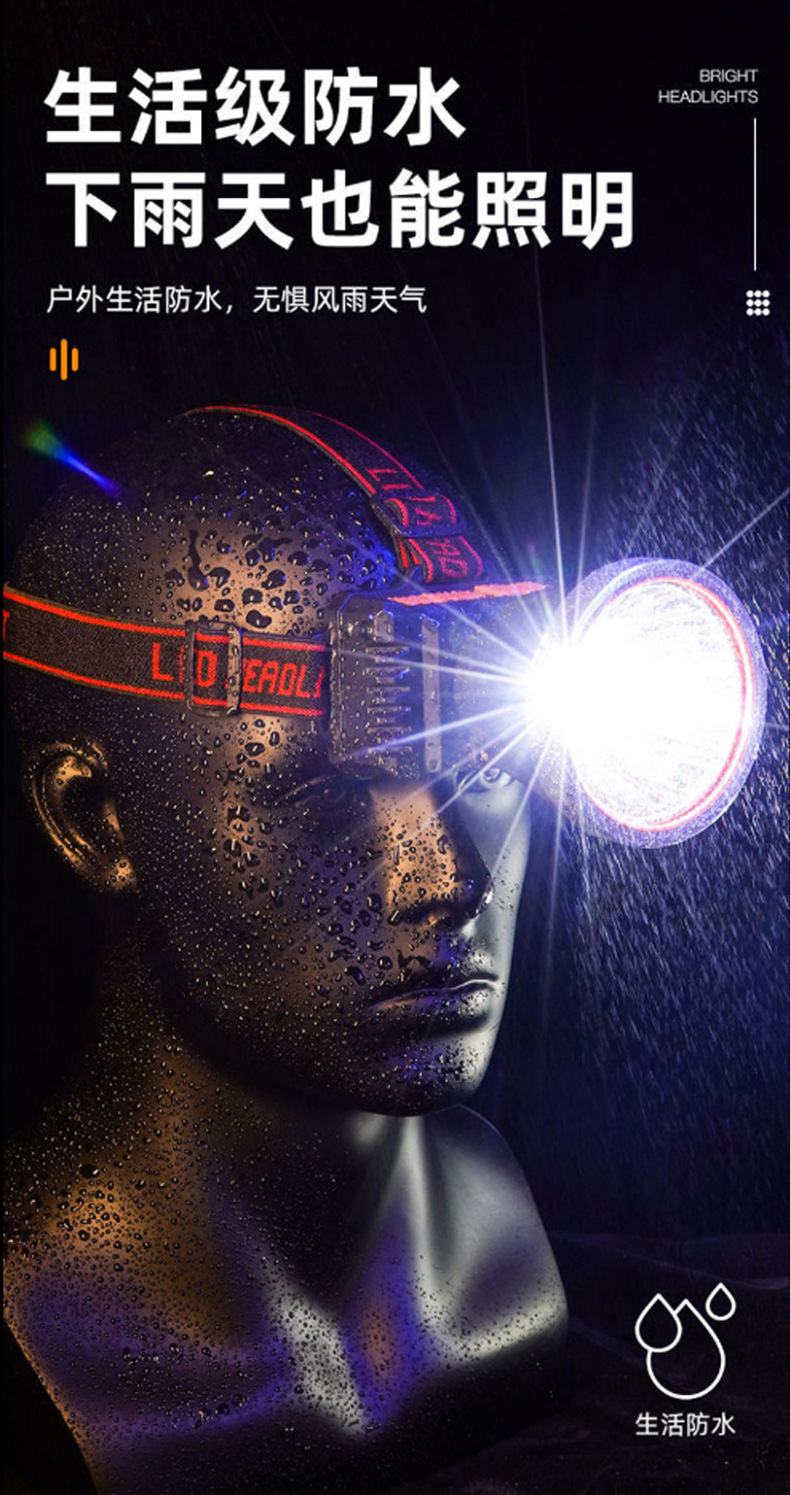 국경 노란색 LED 라이트 헤드 램프 헤드 마운트 유도 야간 낚시 램프 충전식 보물 야외 손전등 도매