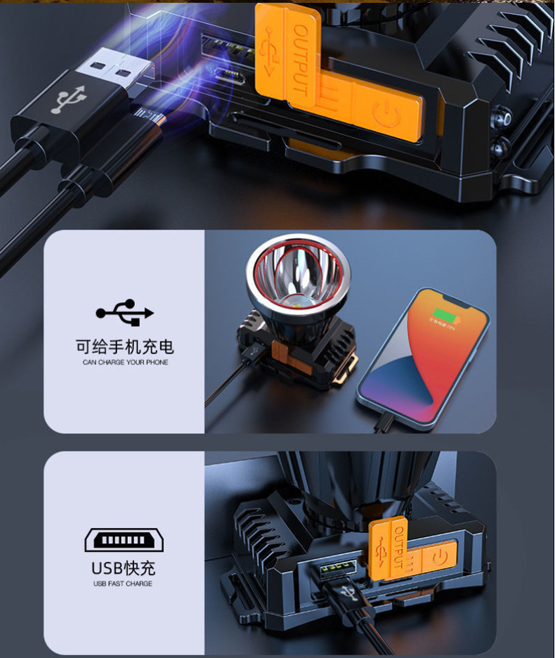 국경 노란색 LED 라이트 헤드 램프 헤드 마운트 유도 야간 낚시 램프 충전식 보물 야외 손전등 도매스토어 가기