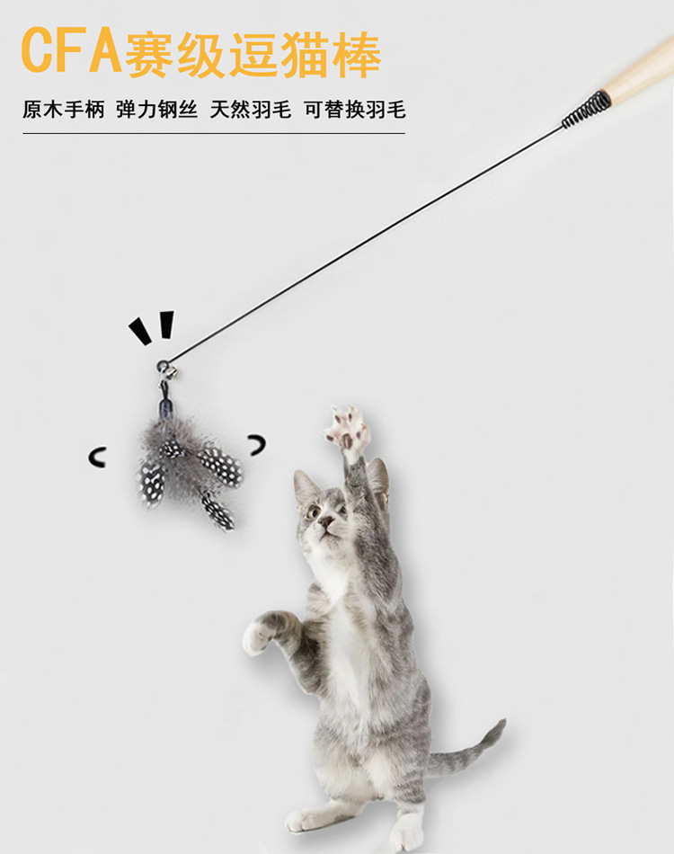 CFA 클래스 나무 손잡이 봄 고양이 티저 진주 깃털 교체 헤드 스크래치 방지 고양이 장난감 애완 동물 용품