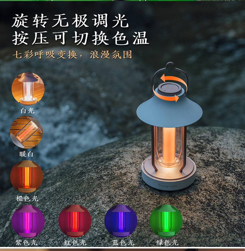국경 간 폭발 캠핑 조명 복고풍 등불 야외 충전 조명 분위기 야간 조명 휴대용 텐트 조명 긴 배터리 수명스토어 가기