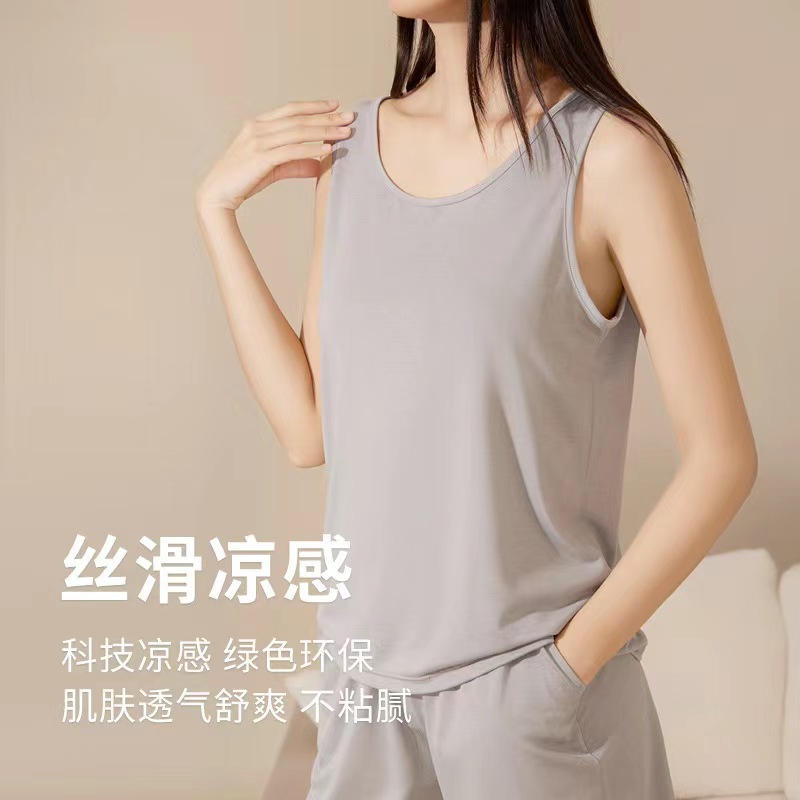 공장 직접 지방 자매 대형 버전 200kg 얼음 실크 조끼 편안한 U-칼라 레저 시원한 여름 가정을 착용 할 수 있습니다스토어 가기