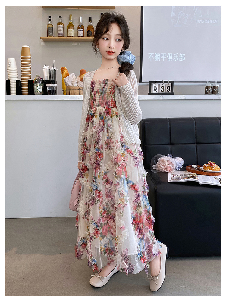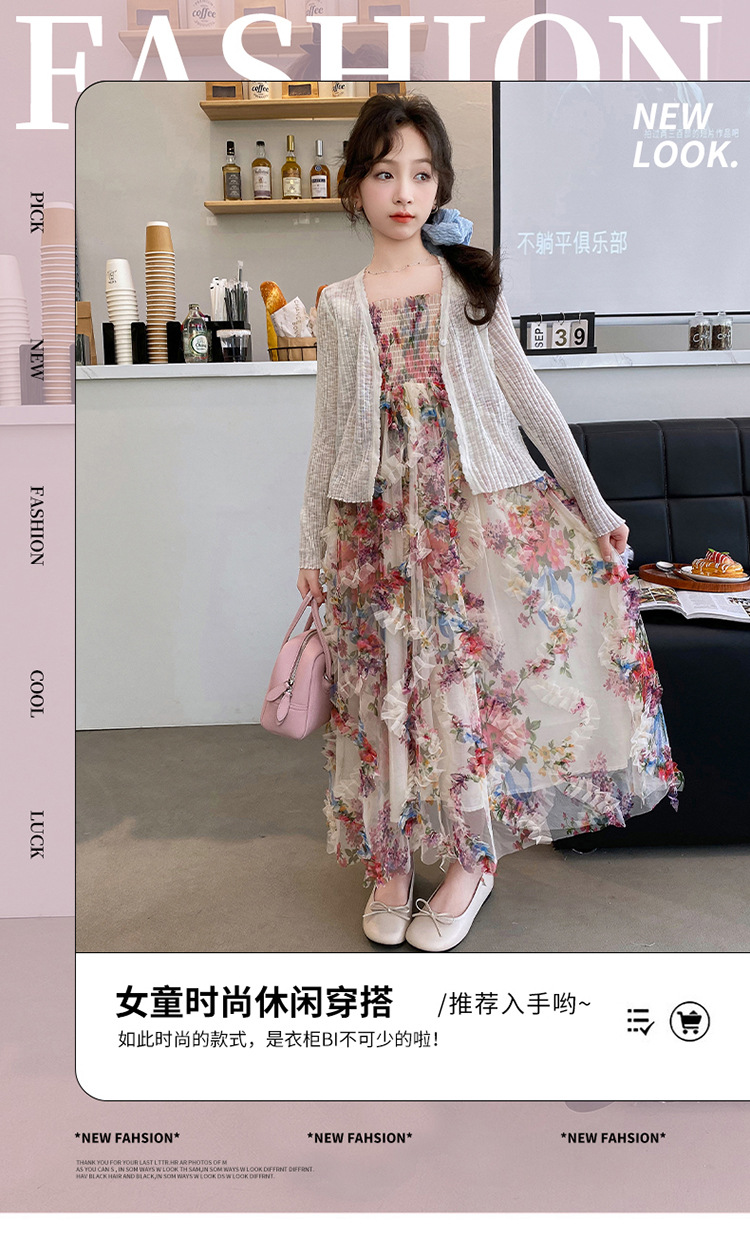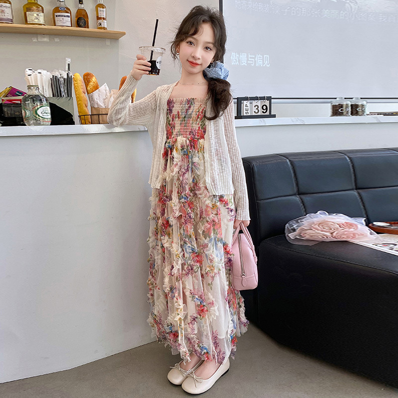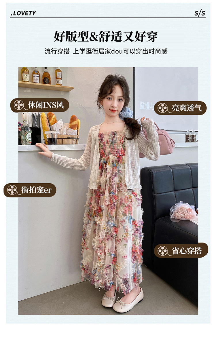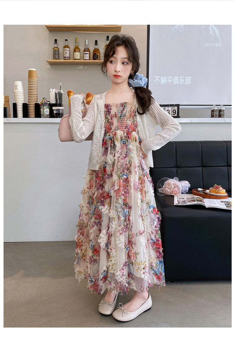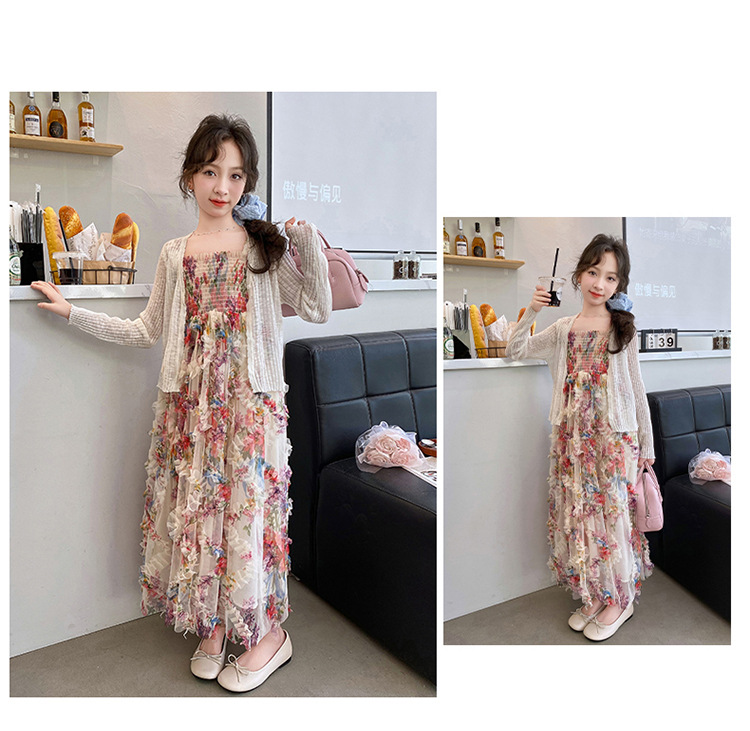 소녀의 레이스 꽃 원피스 어린이 여름 공주 원피스 2024 새로운 스타일 어린 소녀의 태양 보호 의류 슬립 원피스 비치 원피스스토어 가기