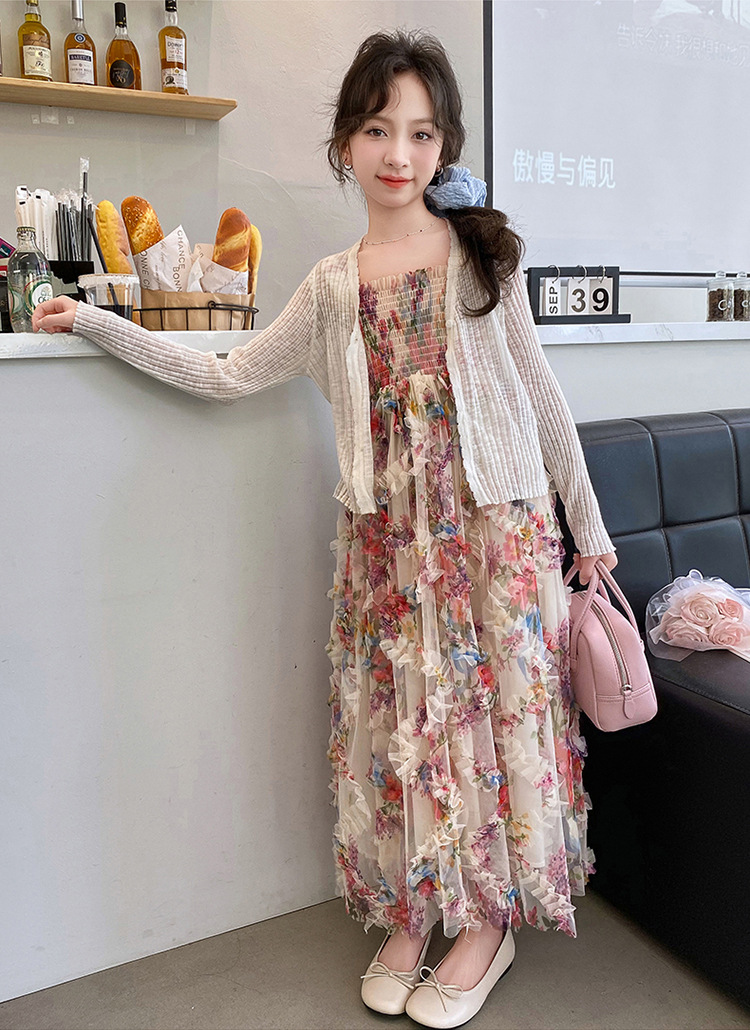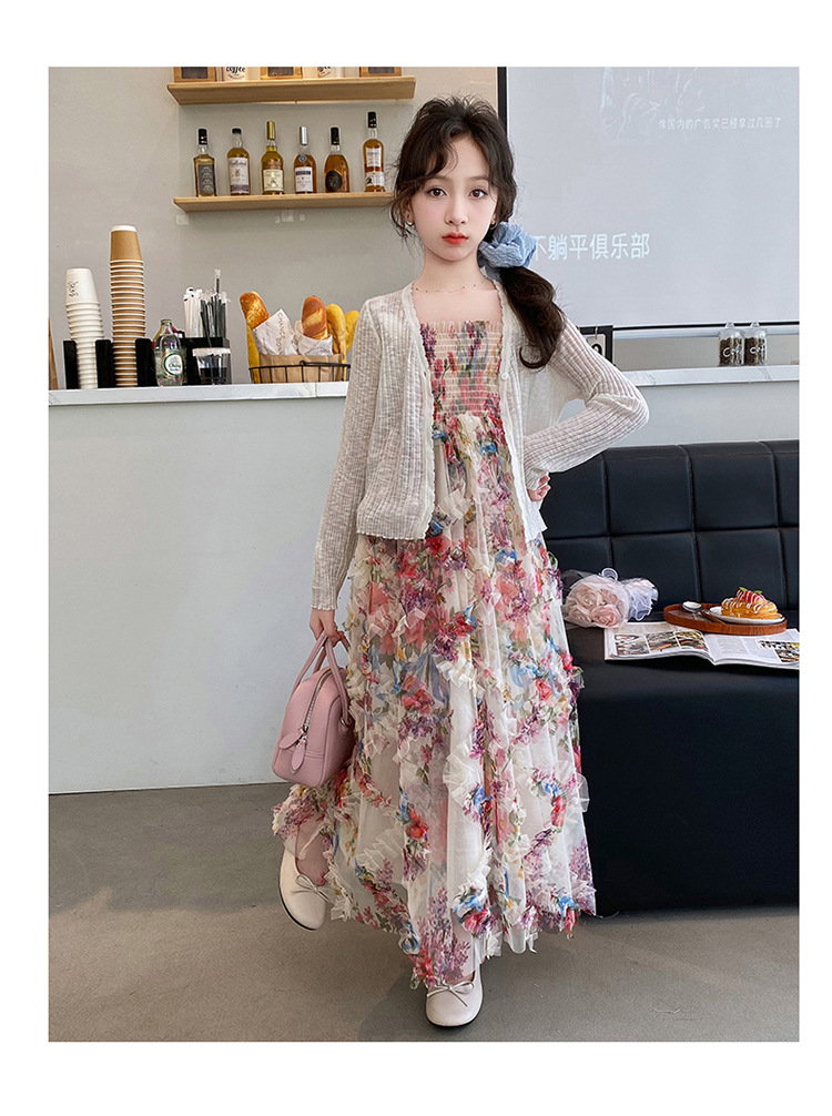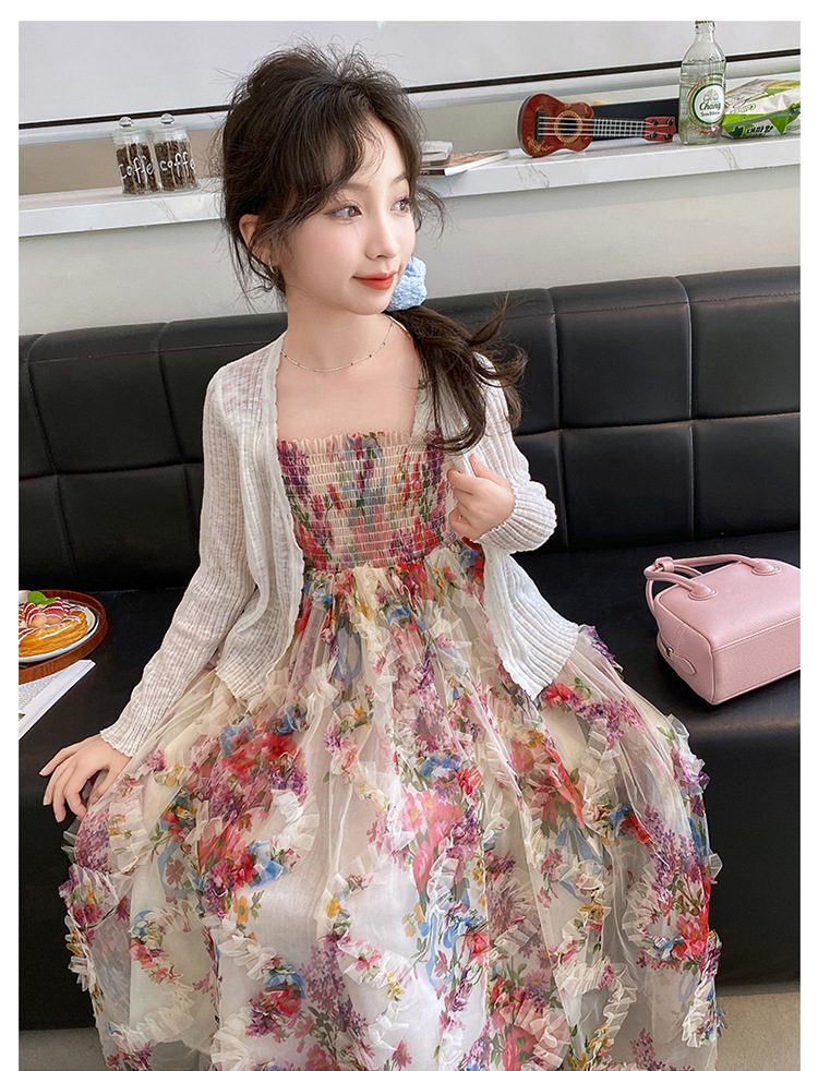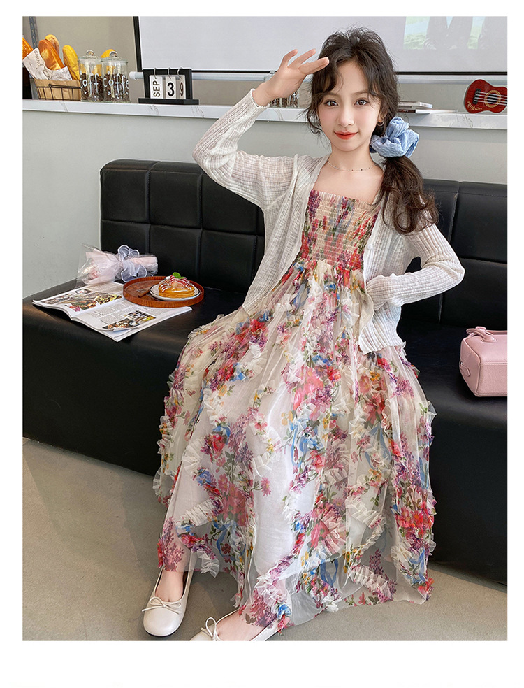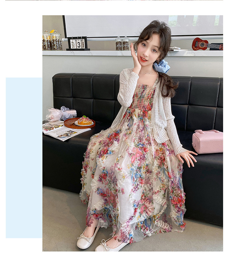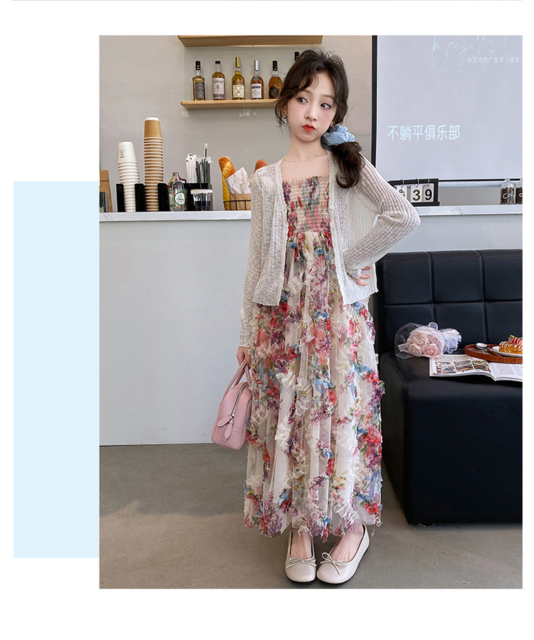 소녀의 레이스 꽃 원피스 어린이 여름 공주 원피스 2024 새로운 스타일 어린 소녀의 태양 보호 의류 슬립 원피스 비치 원피스스토어 가기