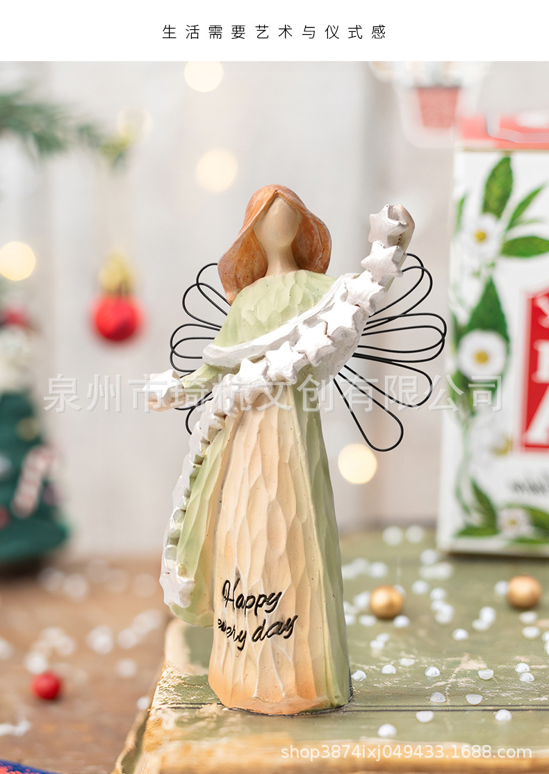 국경 새 가족 시리즈 모조 목판 데스크탑 작은 장식품 천사 장식품 장식 휴일 선물 수지 장식품