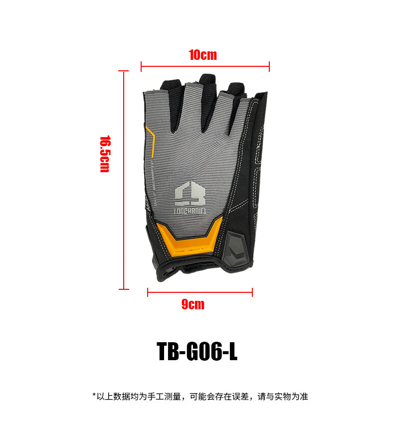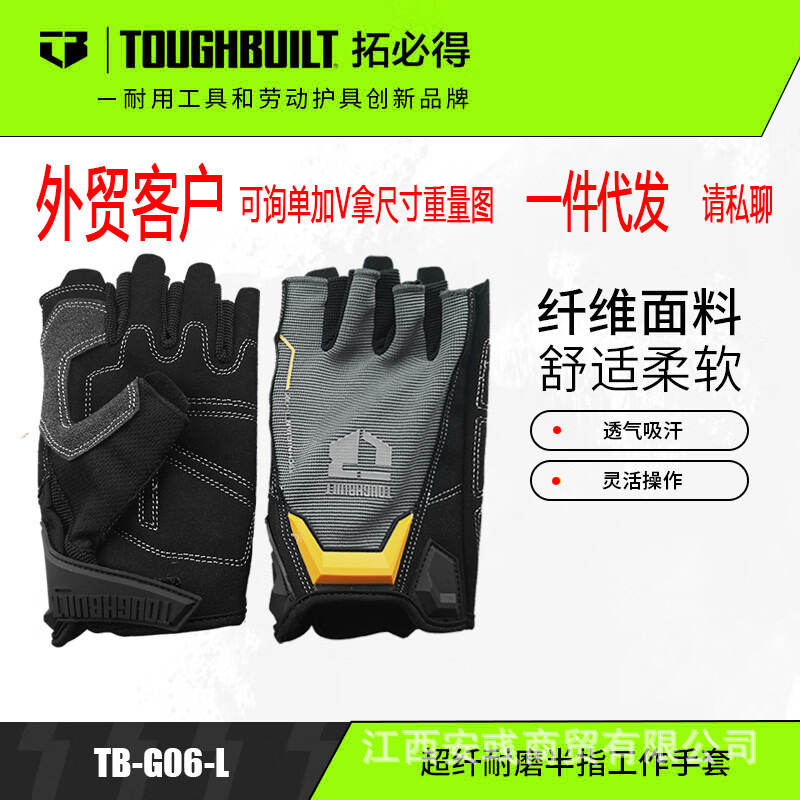 TOUGHBUILT 토퍼 도구 마이크로 화이버 내마모성 반 손가락 작업 장갑 야외 건설 현장 가정용 TB-G06-L