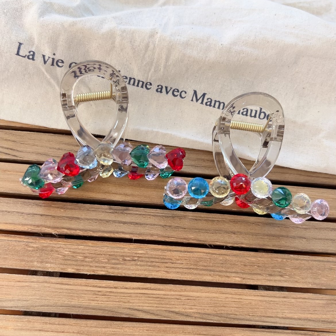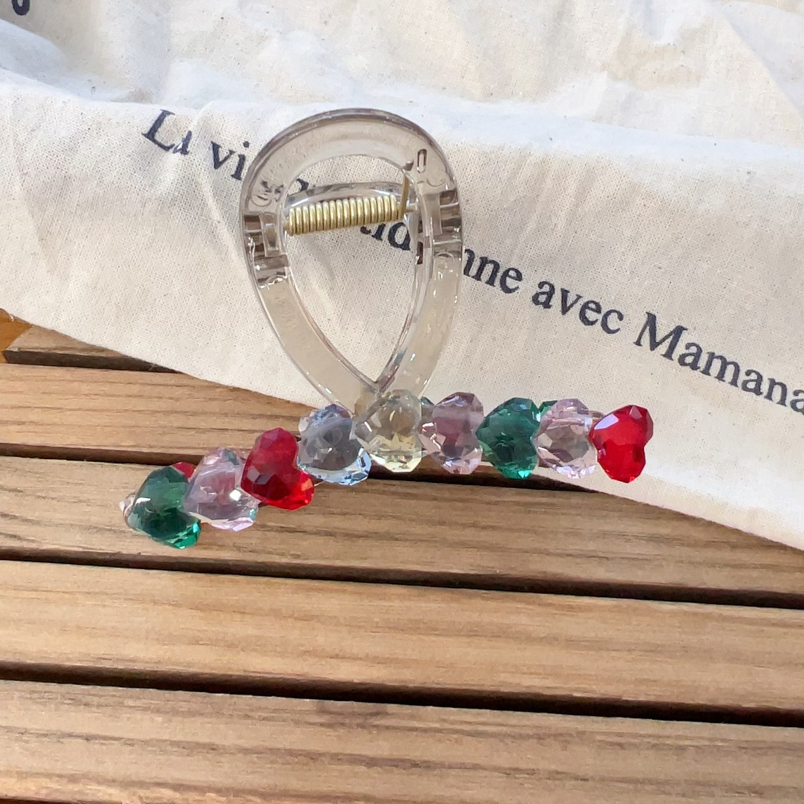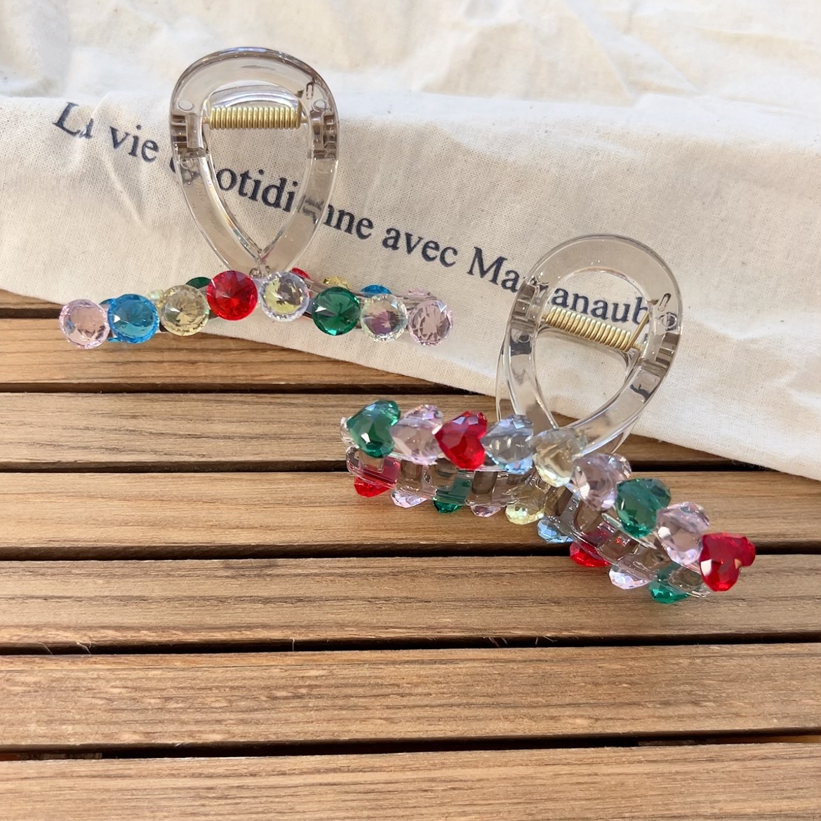 여름 도파민 컬러 라인스톤 사랑 아크릴 그랩 클립 여성용 고급 머리 상어 클립 헤어 액세서리스토어 가기