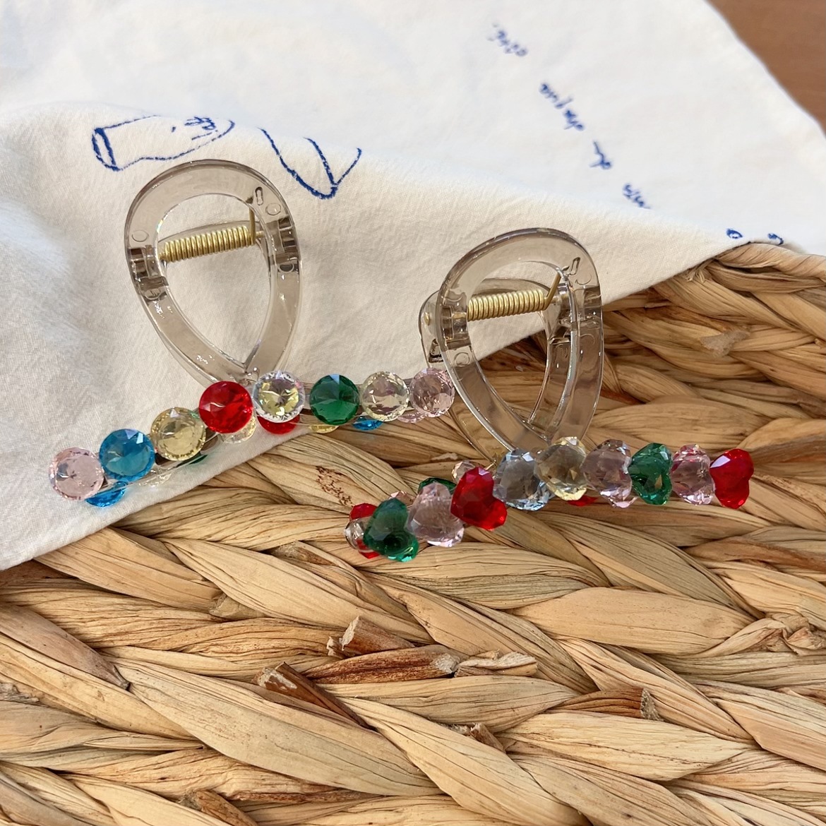 여름 도파민 컬러 라인스톤 사랑 아크릴 그랩 클립 여성용 고급 머리 상어 클립 헤어 액세서리