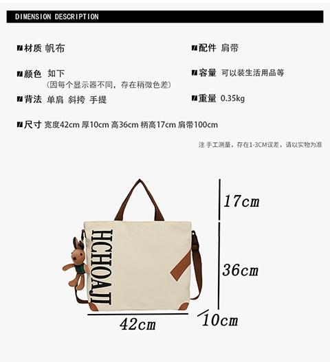 나가는 캔버스 가방 여성 하이 엔드 센스 대용량 초기 8 핸드백 학생 클래스 틈새 크로스 바디 숄더 백스토어 가기