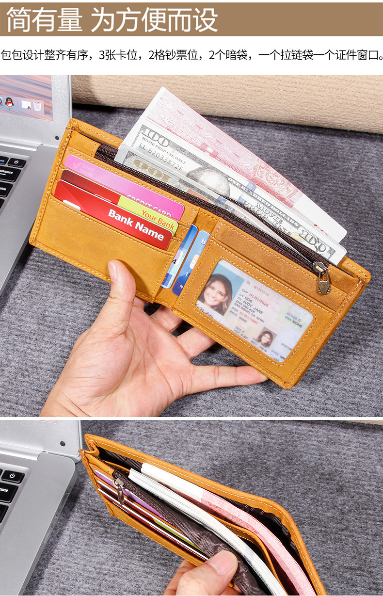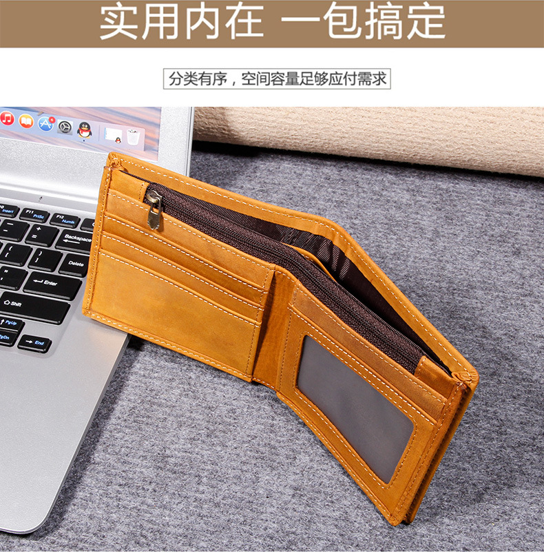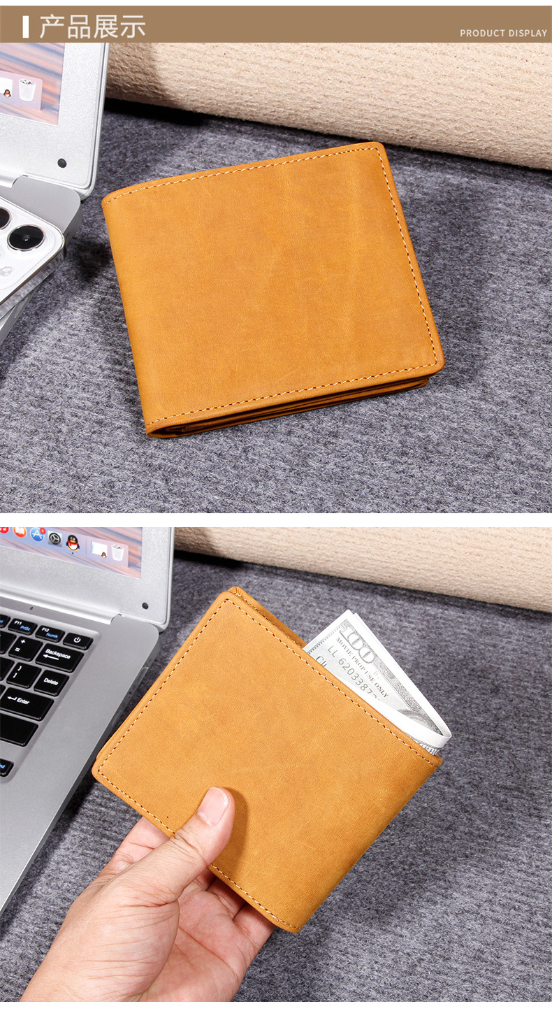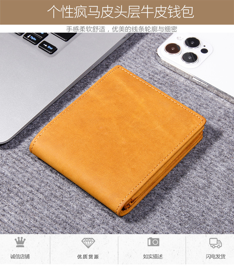 새로운 지갑 남자의 미친 말 가죽 빈티지 사업 남자의 지갑 멀티 카드 Rfid 정품 가죽 지갑 짧은 지갑스토어 가기