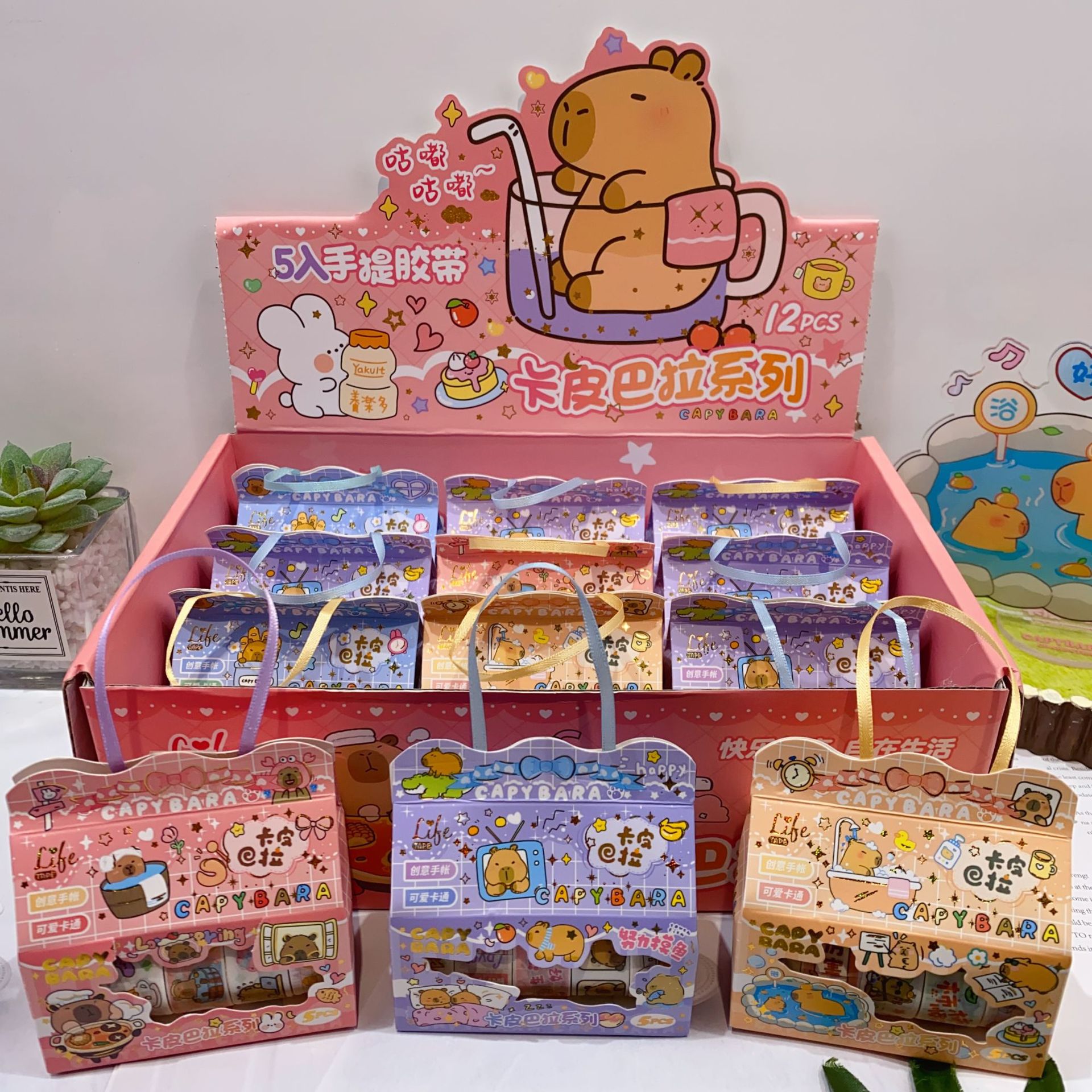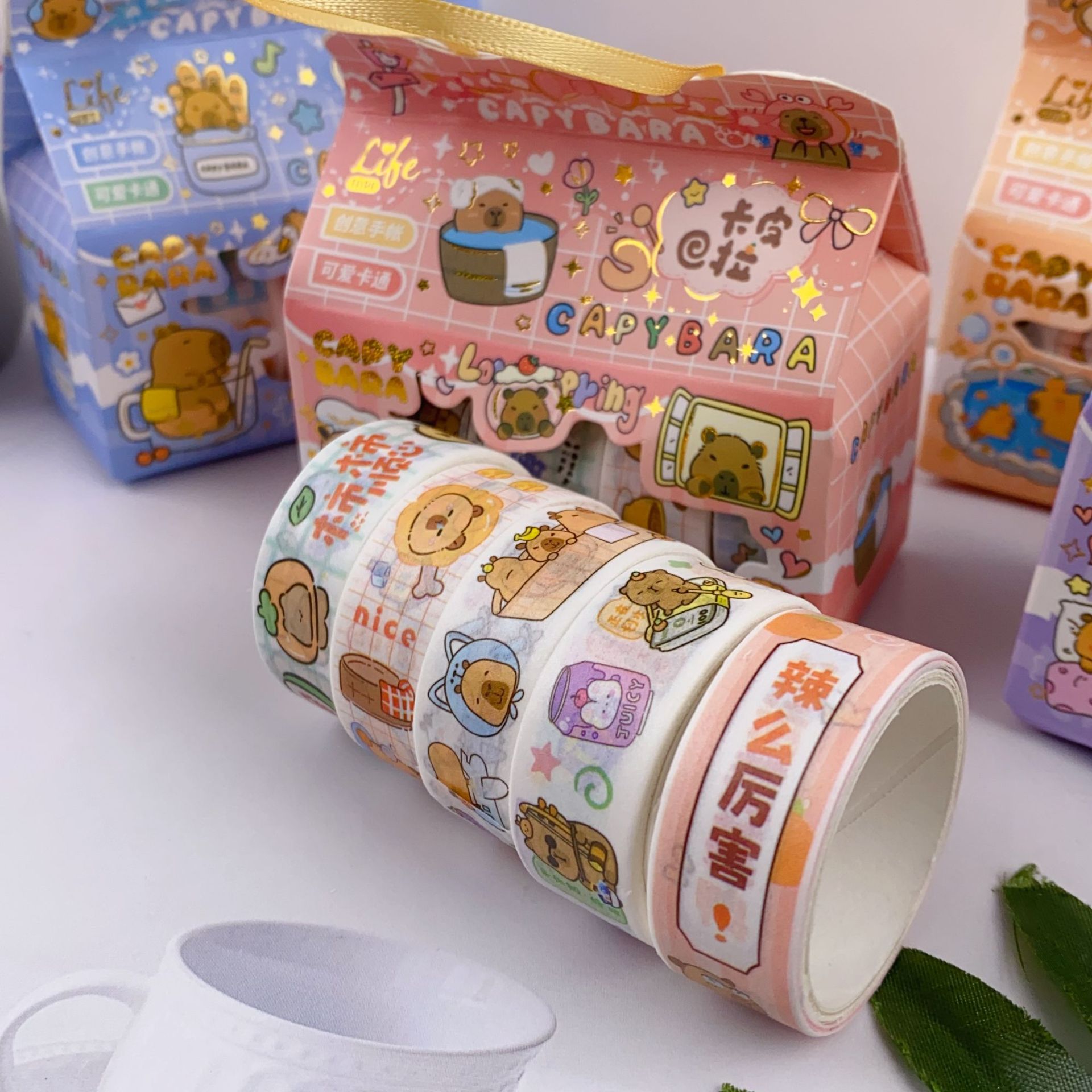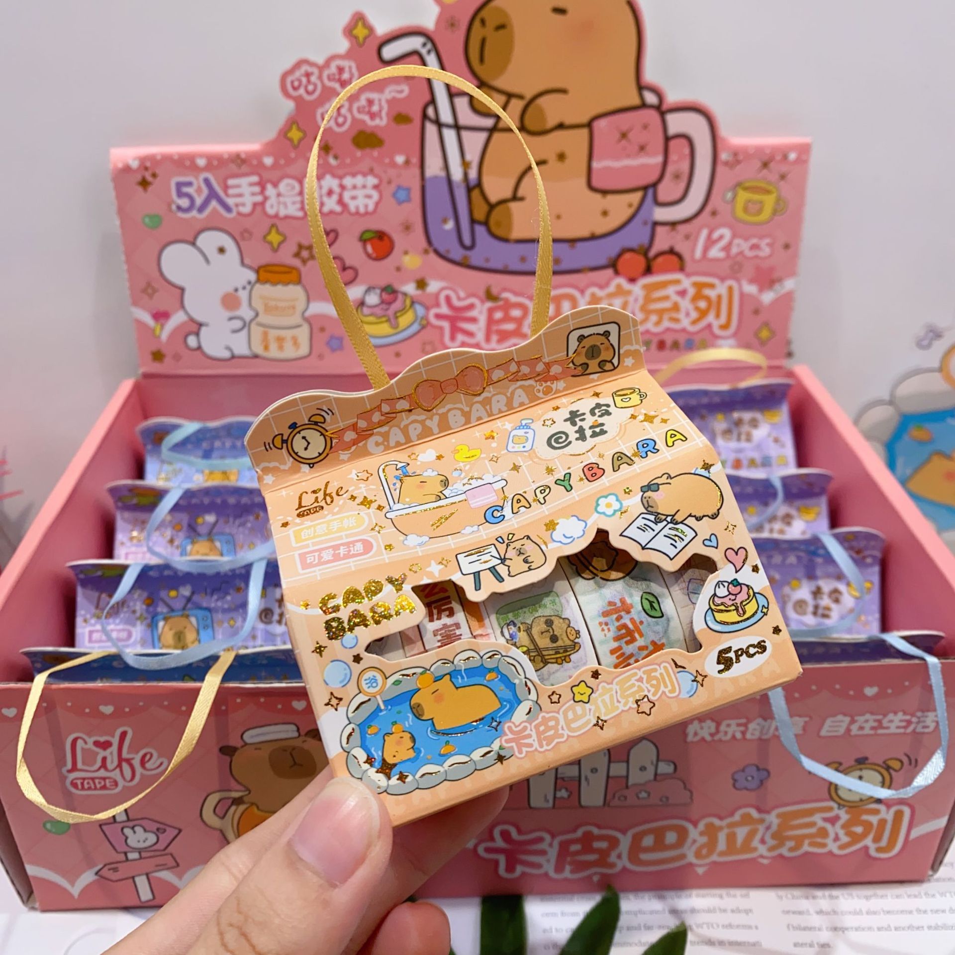 귀여운 리치 카비 발라 휴대용 및 종이 테이프 세트 손 계정 스티커 학생 아름다운 테이프 5스토어 가기