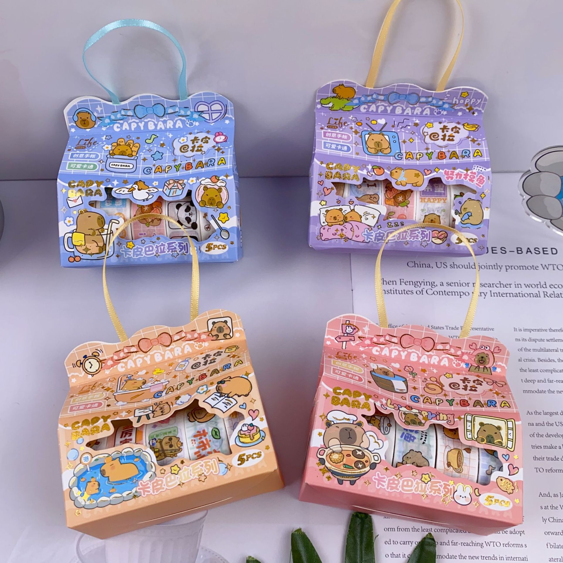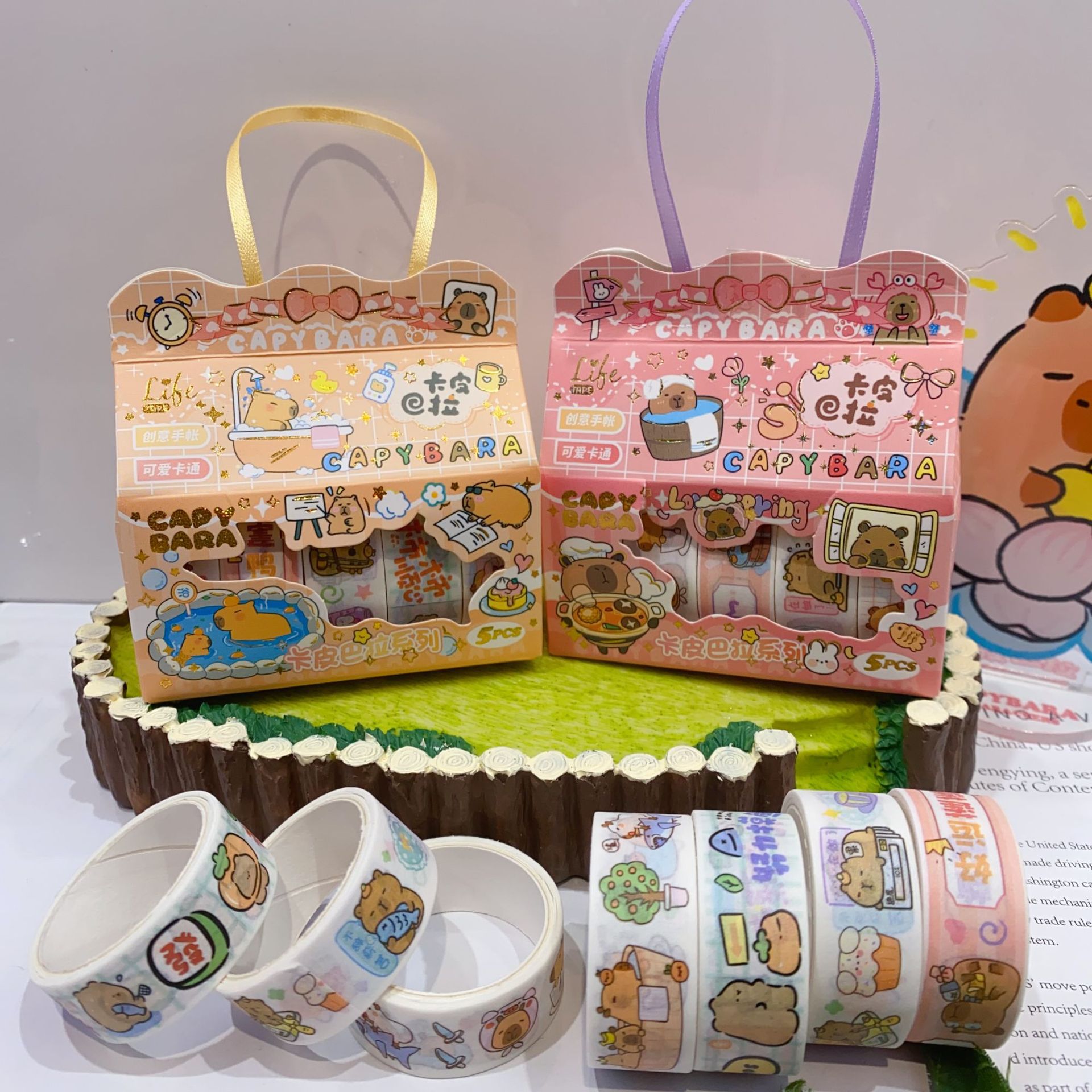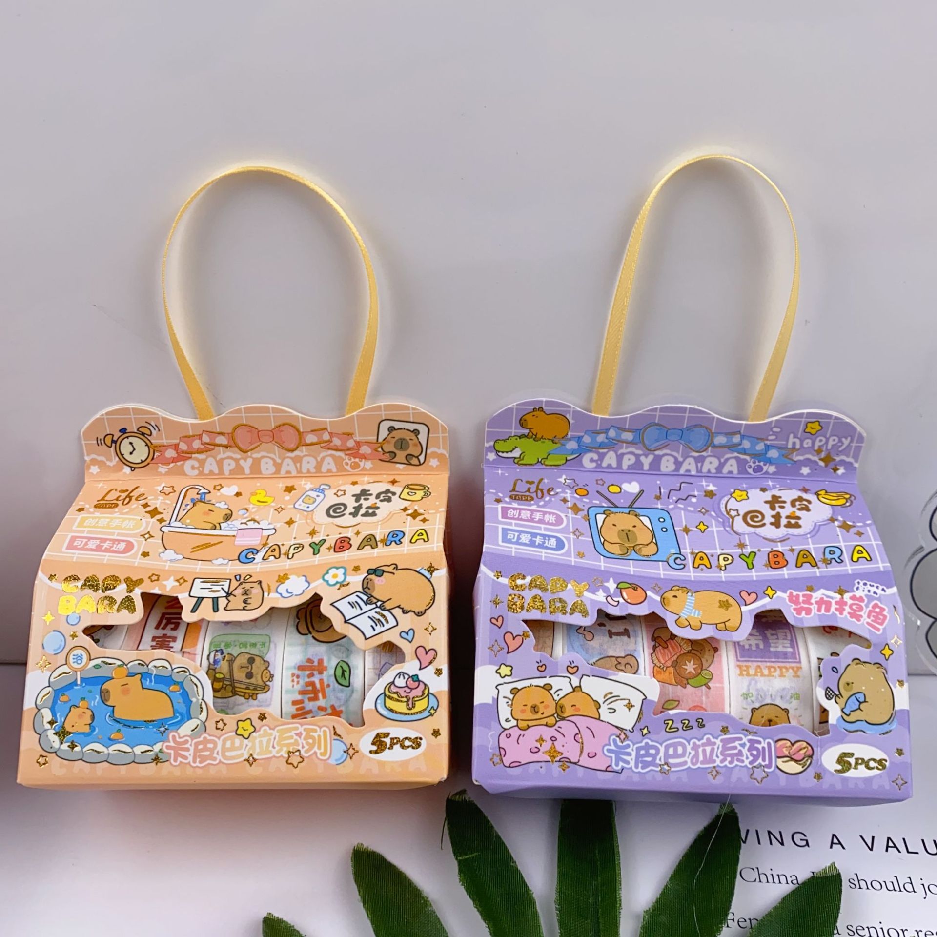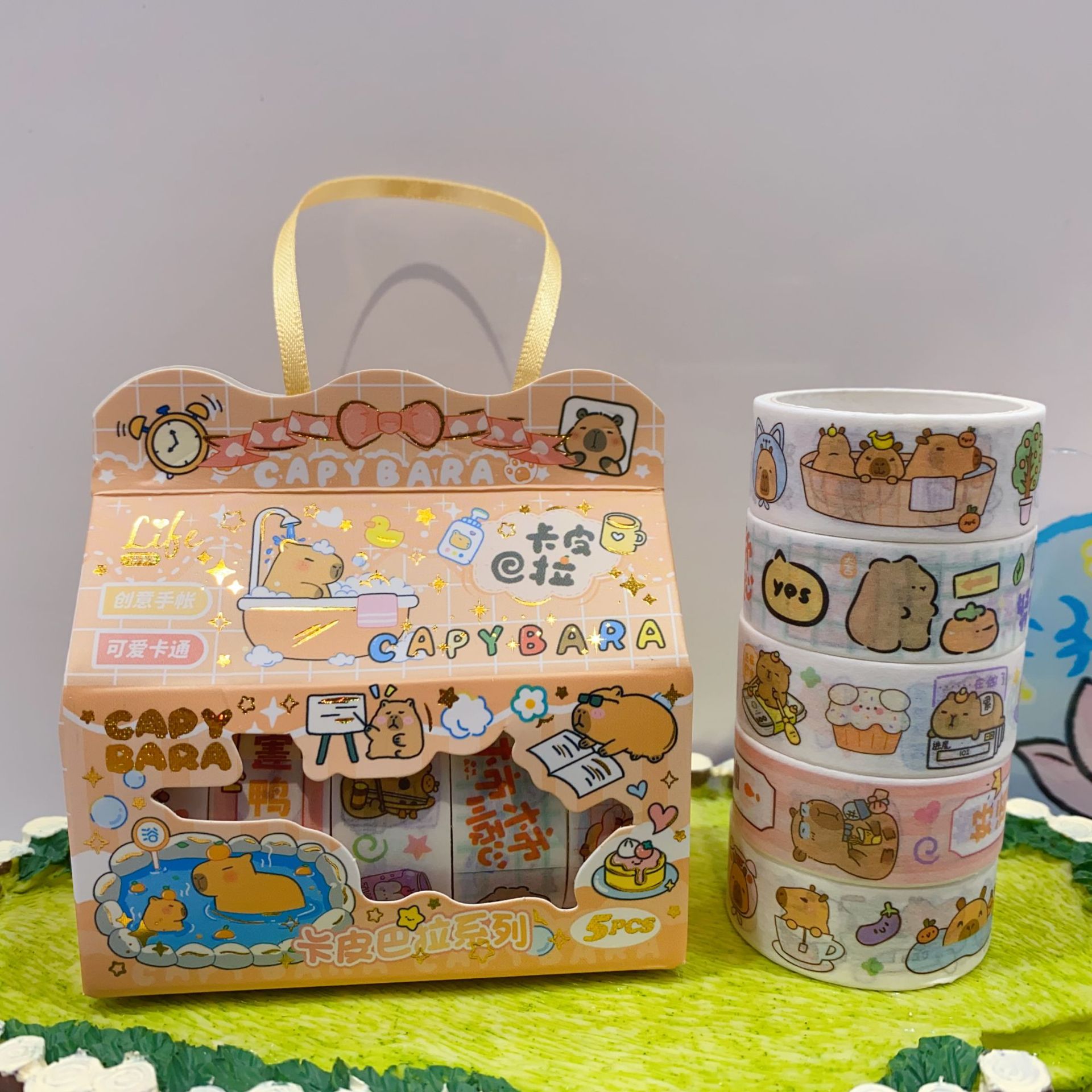 귀여운 리치 카비 발라 휴대용 및 종이 테이프 세트 손 계정 스티커 학생 아름다운 테이프 5스토어 가기