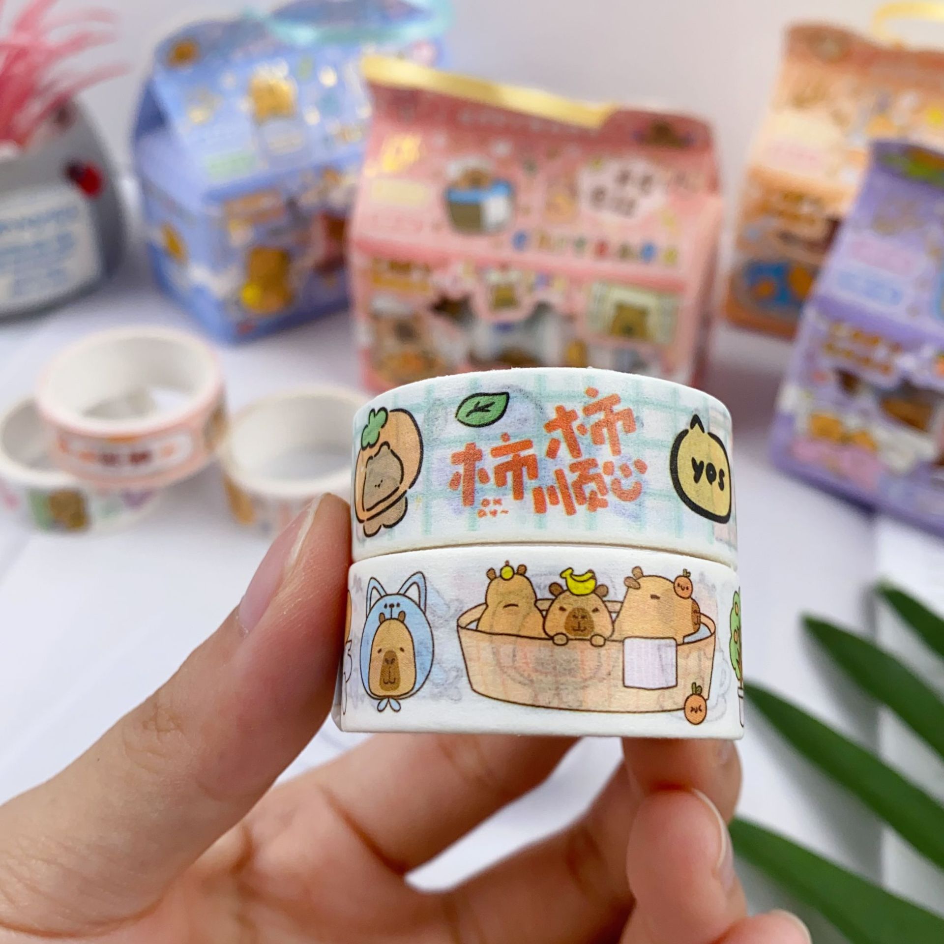 귀여운 리치 카비 발라 휴대용 및 종이 테이프 세트 손 계정 스티커 학생 아름다운 테이프 5