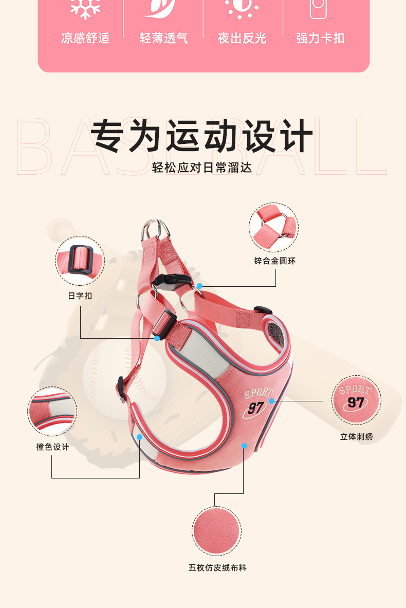 새로운 빈티지 야구 세트 대학 스타일의 통기성 메쉬 개 가슴 스트랩 폭발 방지 조끼 반사 가슴 스트랩스토어 가기