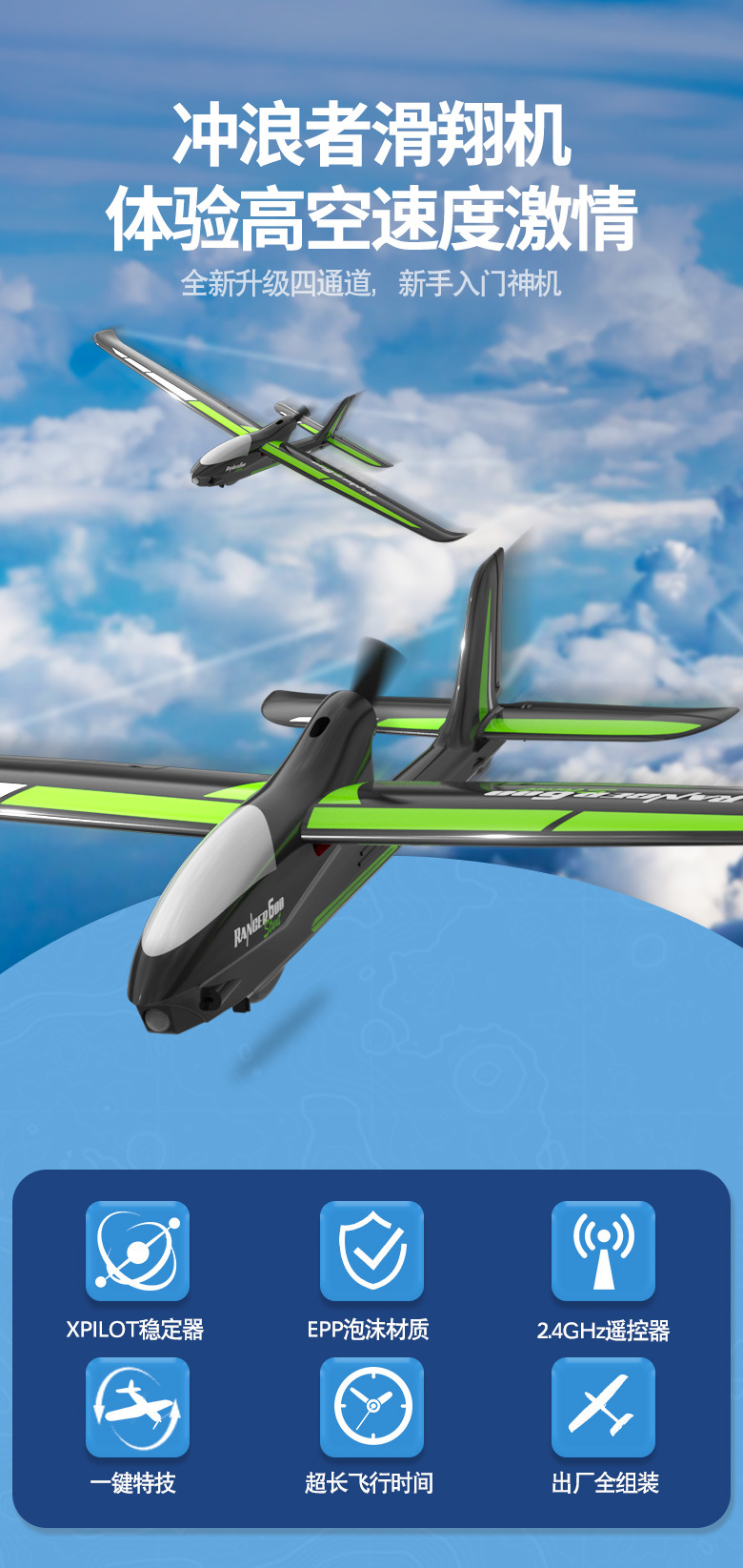 국경 오랜스 원격 제어 항공기 글라이더 초보자 보급형 원격 제어 항공기 모델 4 채널 고정익 원격 제어 항공기