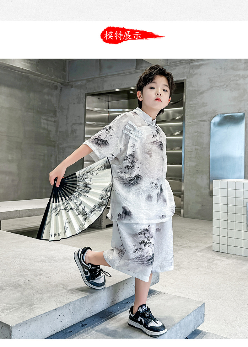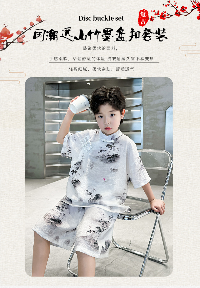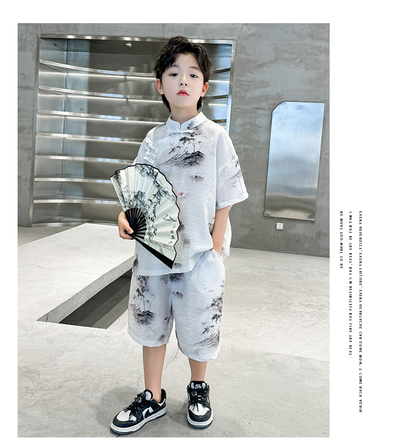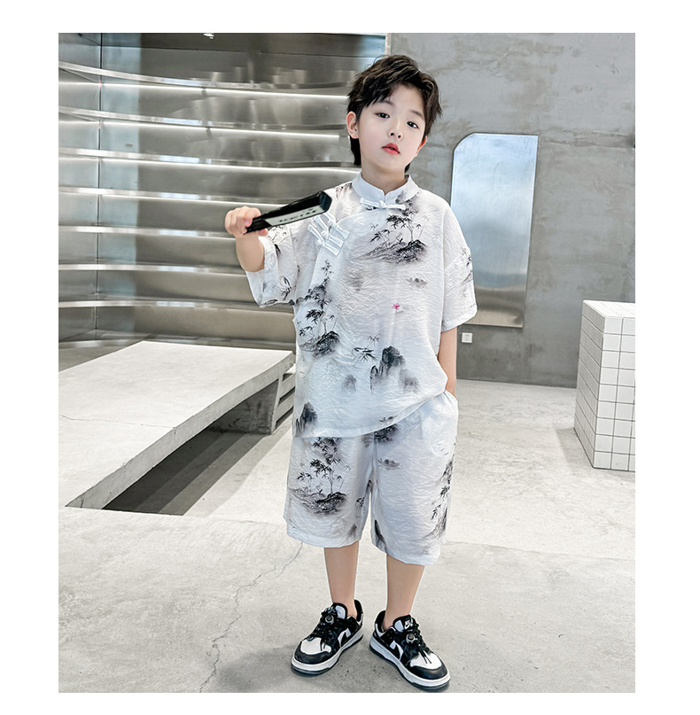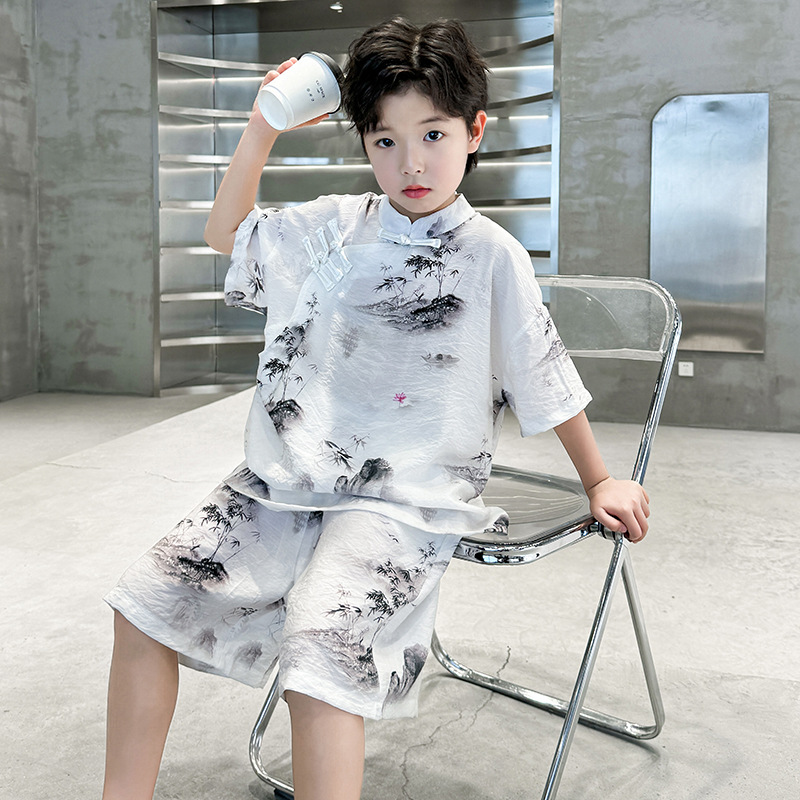 남아 중국풍 한복 반팔 세트 2025 여름 신상 단추 중국풍 아동복 남아 투피스 세트스토어 가기