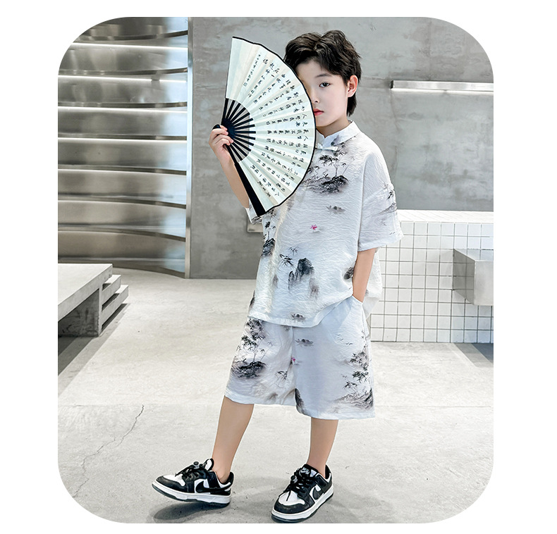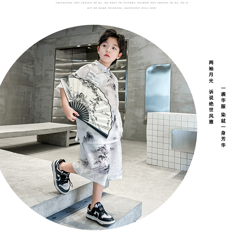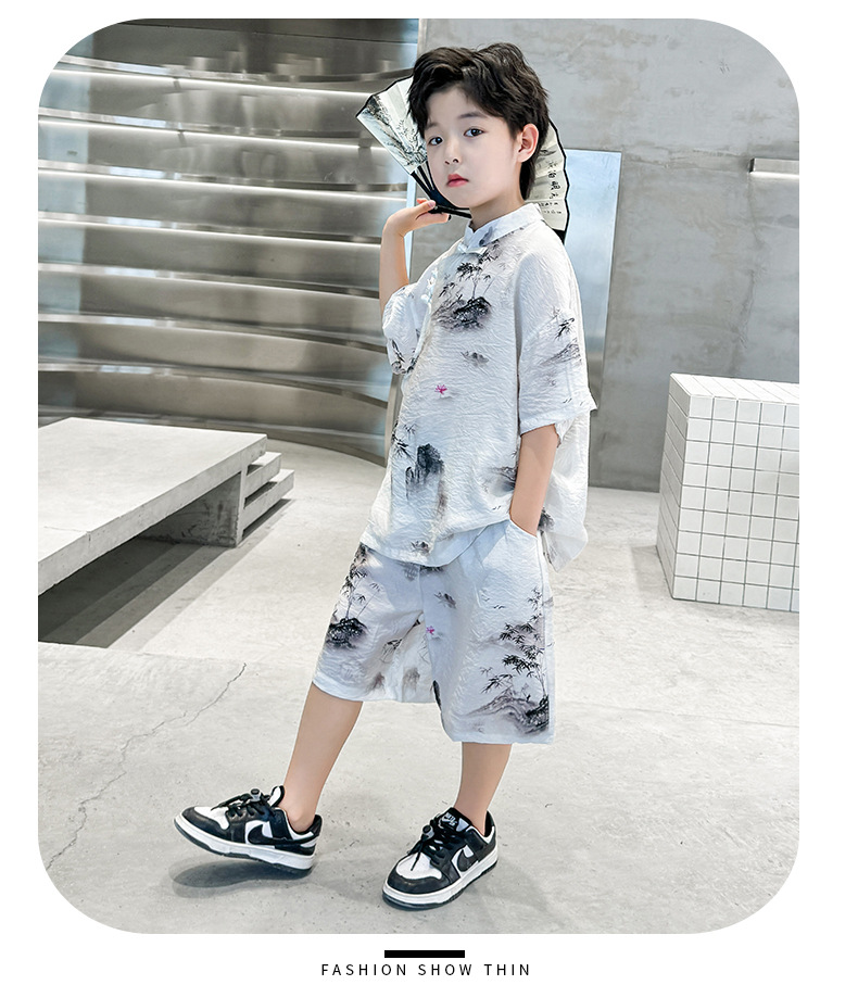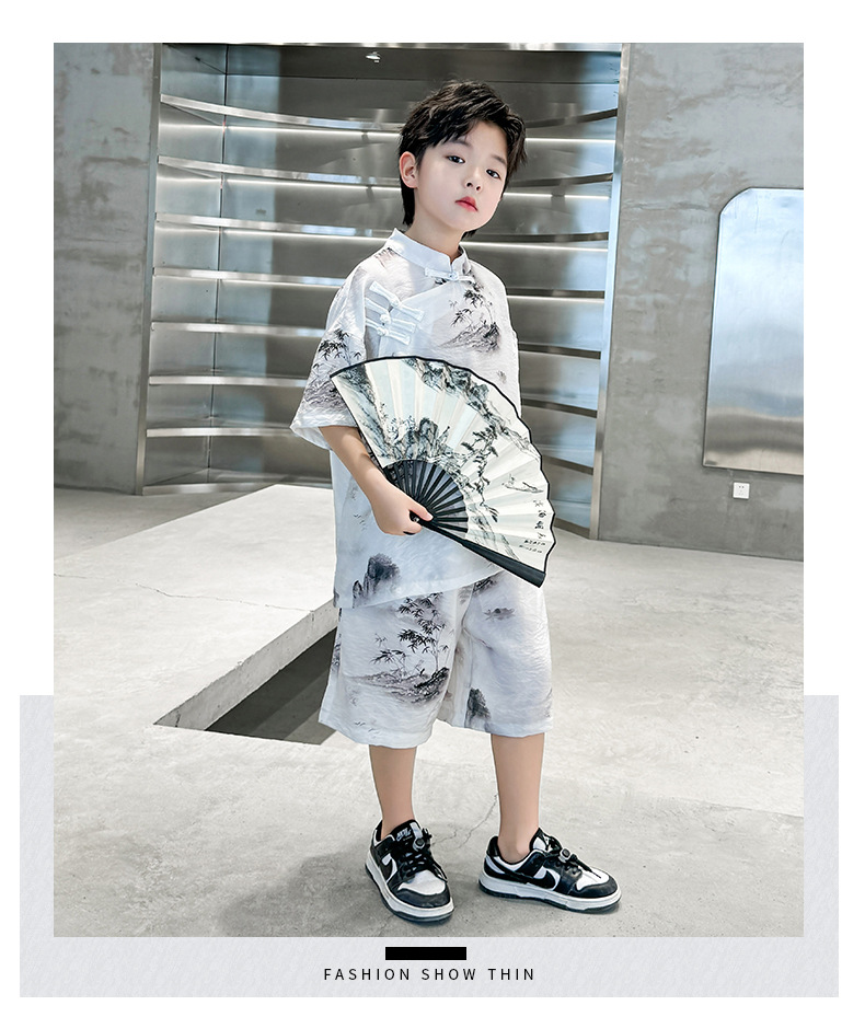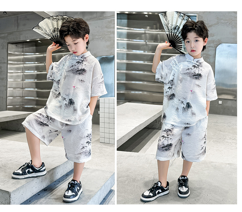 남아 중국풍 한복 반팔 세트 2025 여름 신상 단추 중국풍 아동복 남아 투피스 세트스토어 가기
