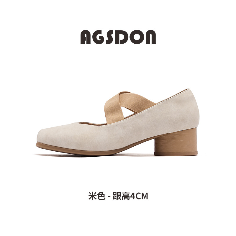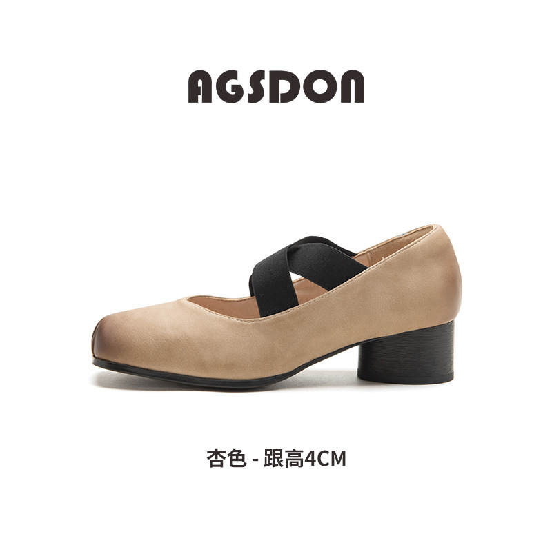 여성을위한 Augushiden 스퀘어 토 신발 2025 새로운 여름 슬립 온 크로스 스트랩 돼지 코 두꺼운 굽 작은 가죽 신발스토어 가기