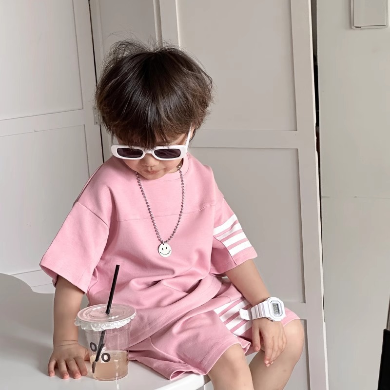 남학생 한국식 서양식 스포츠 세트 여름 반팔 반바지 투피스 3 바 캐주얼 티셔츠 어린이 세트스토어 가기
