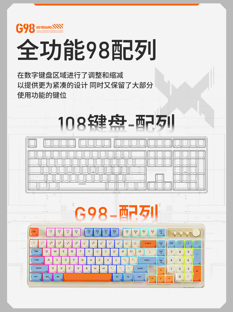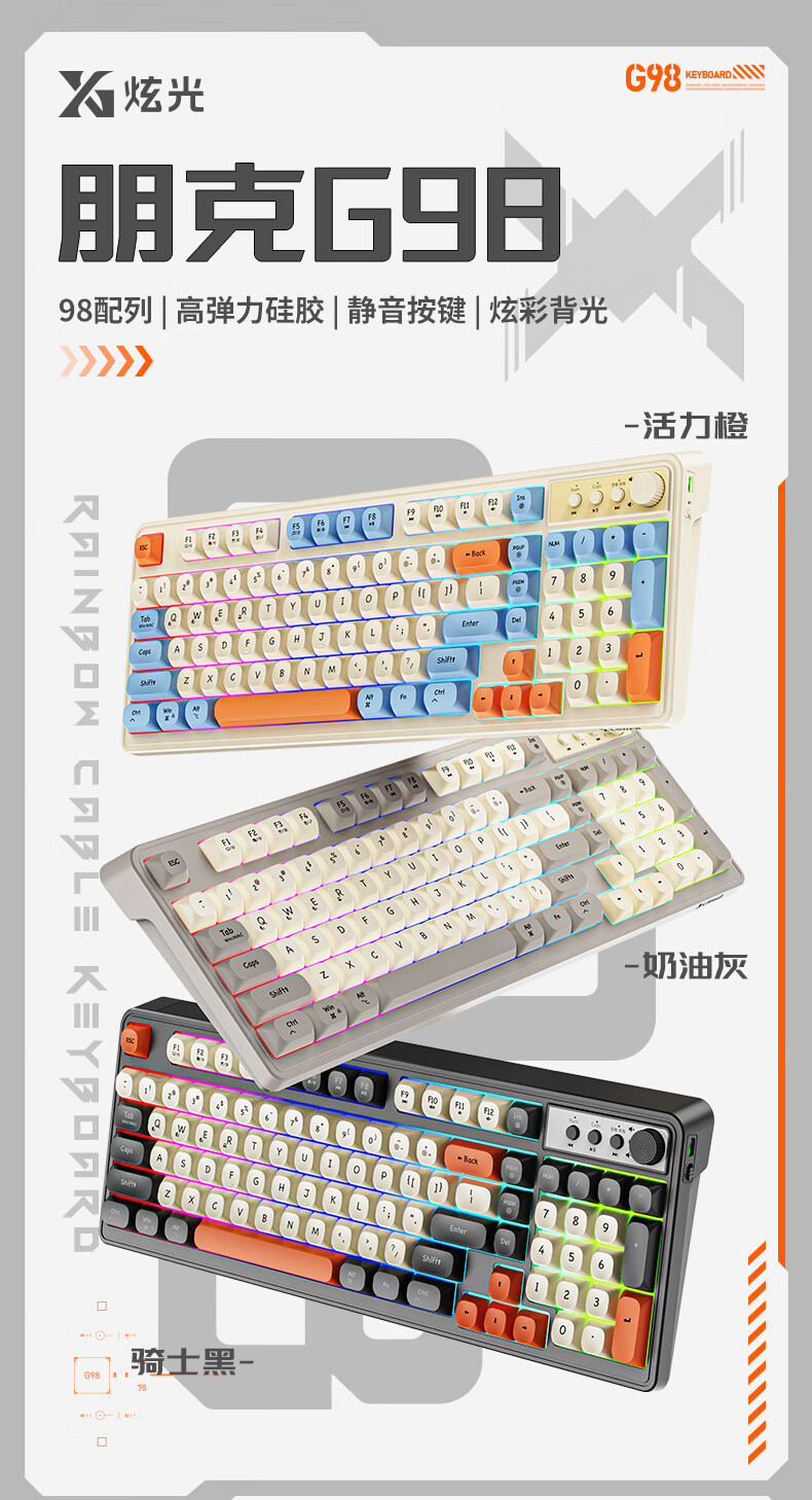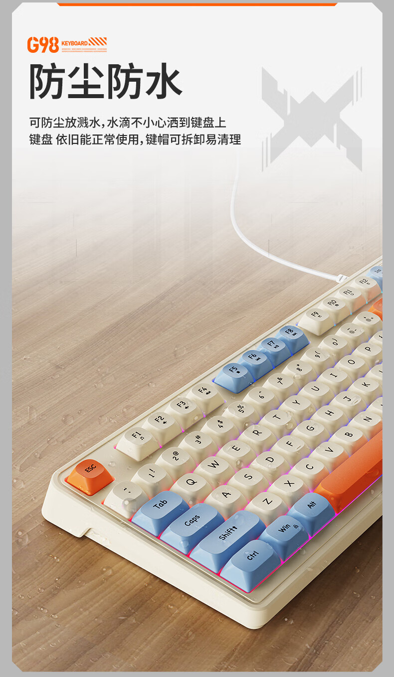프리런서 G98 유선 키보드, 무소음 키, 고급스러운 디자인, e스포츠 게임 및 사무용 범용 멤브레인 키보드