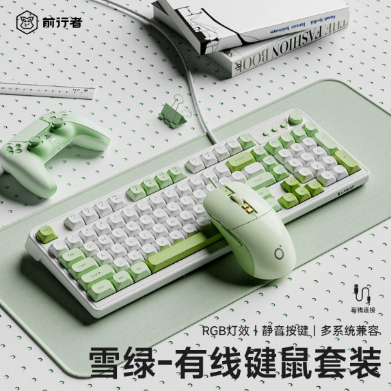 • [오피스세트] 프레리그린-유선-RGB 조명 + 유선 무소음 마우스