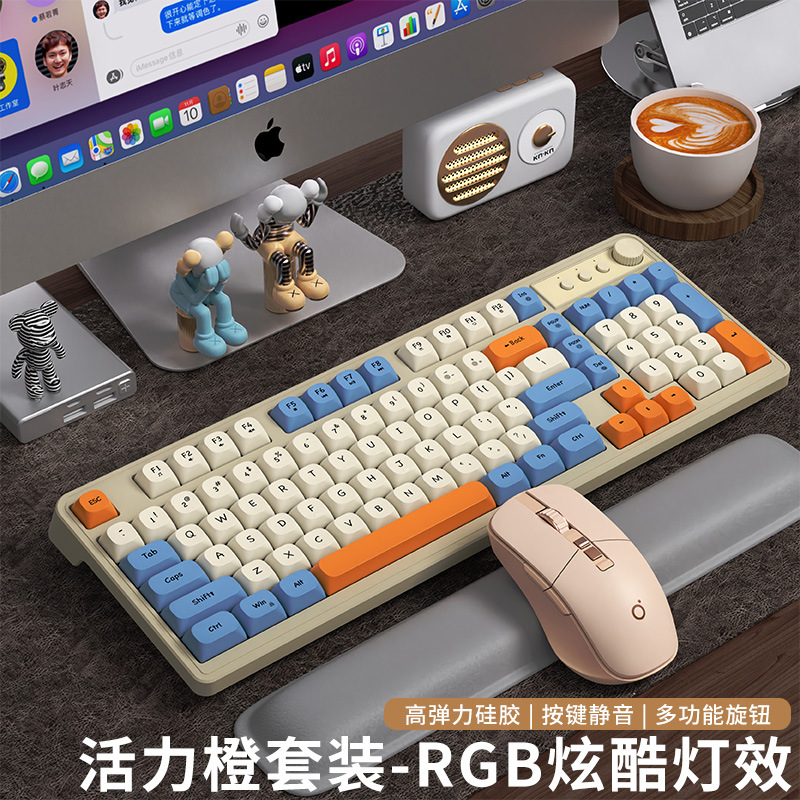 • [오피스 세트] 활력 오렌지 무지개 빛 음소거 마우스